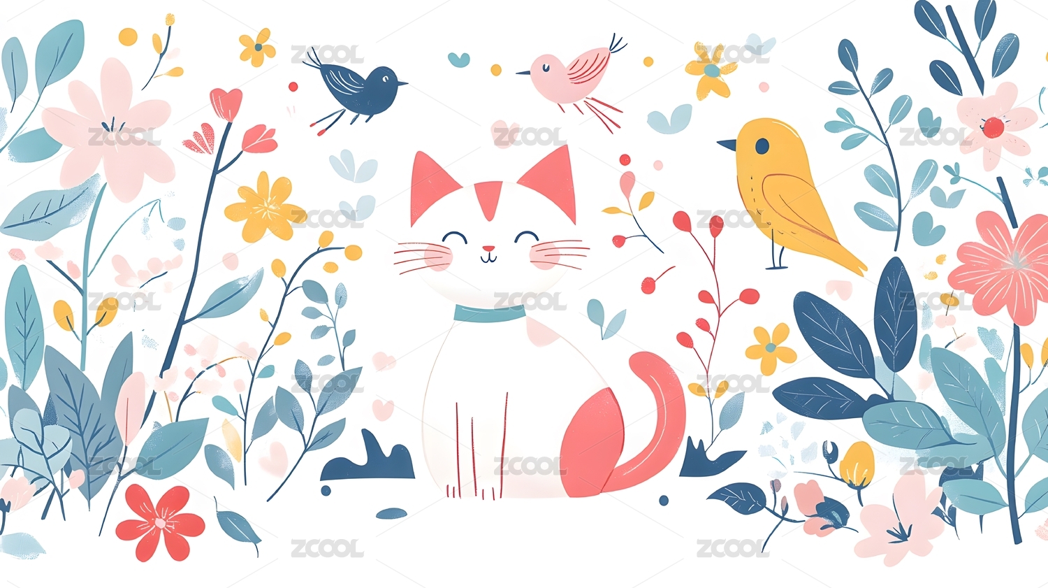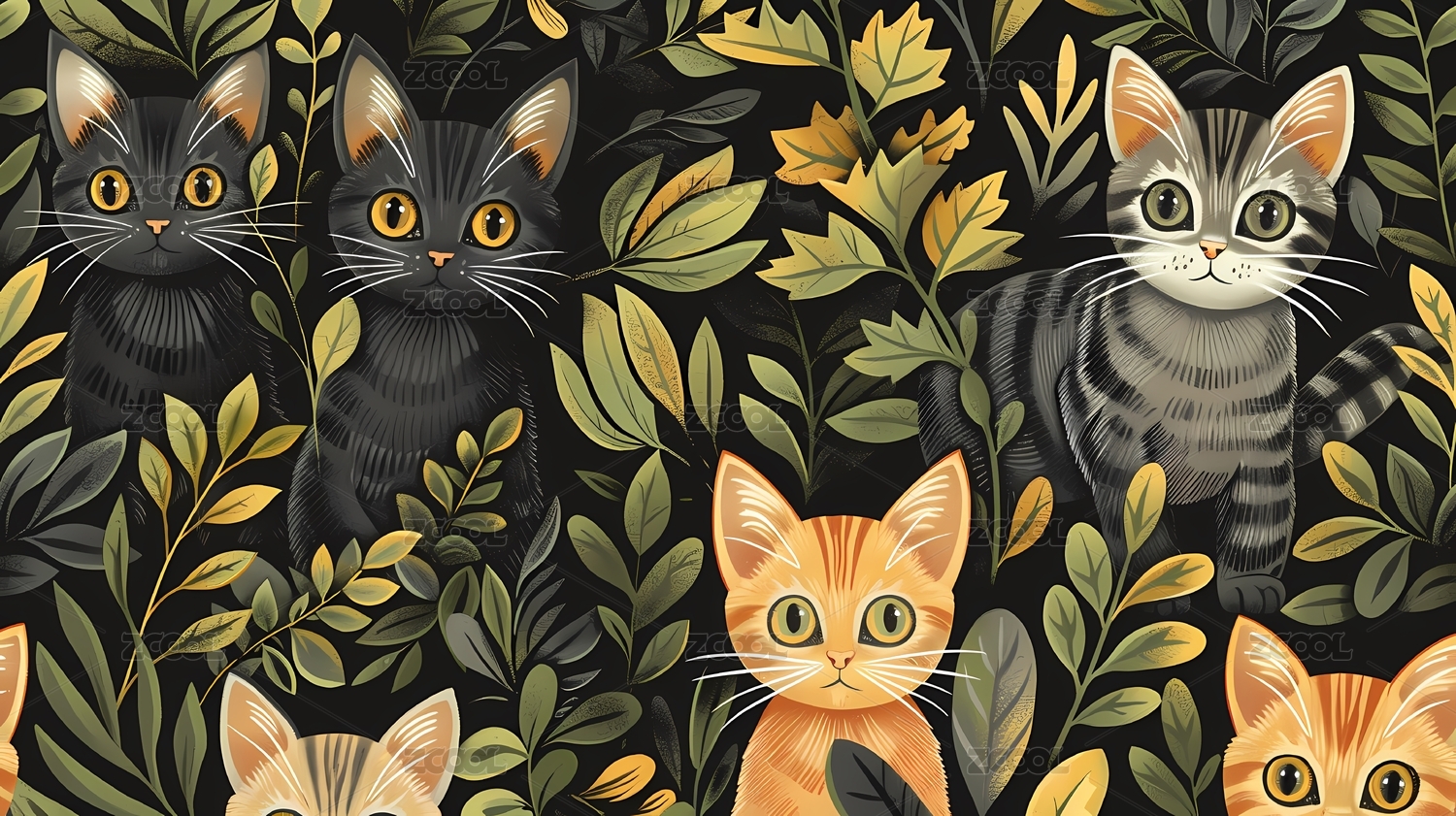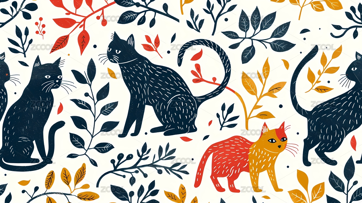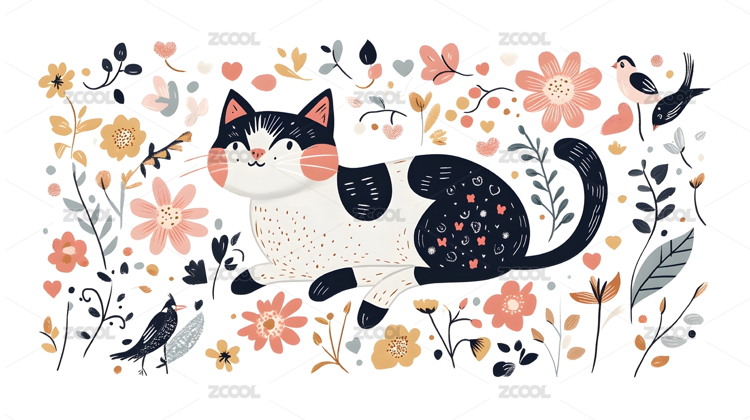 北欧风格居家猫猫感厚涂笔触抽象装饰画背景