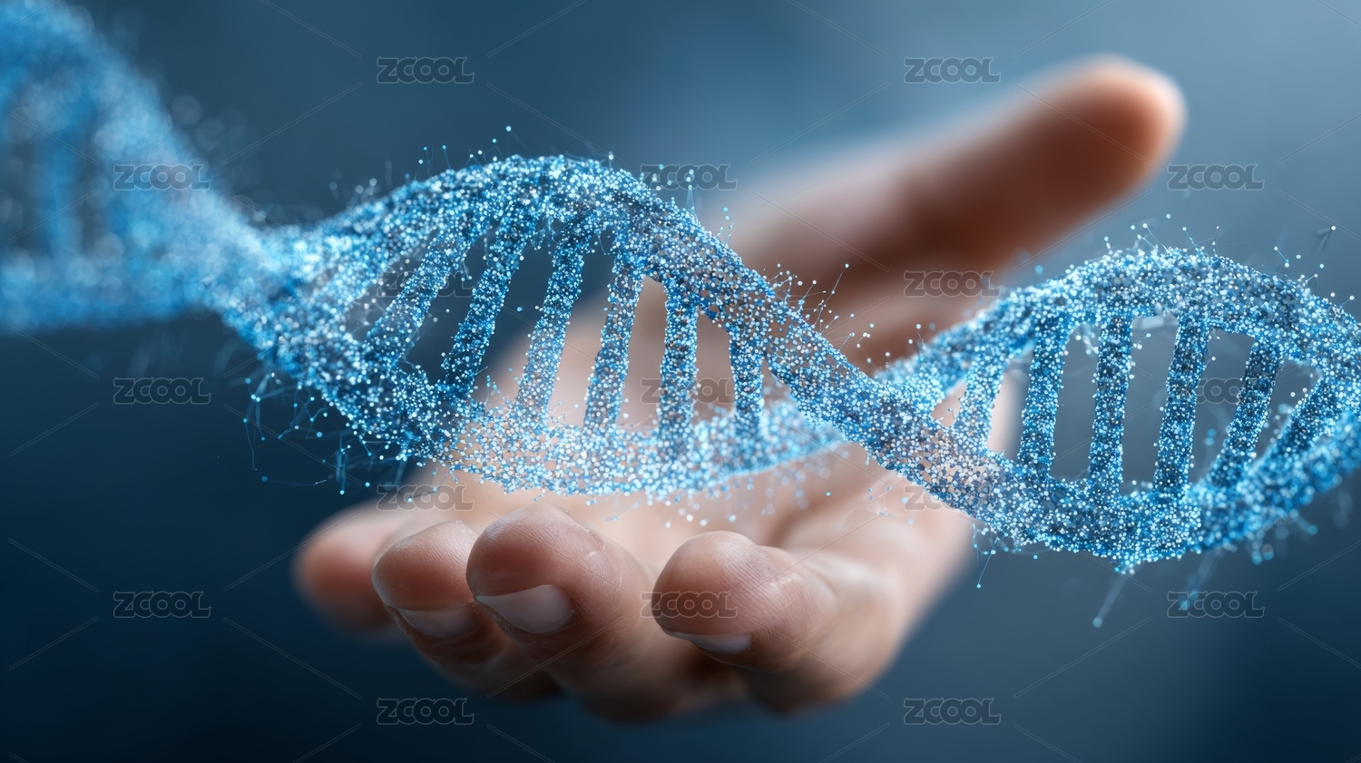 手掌与发光DNA双螺旋