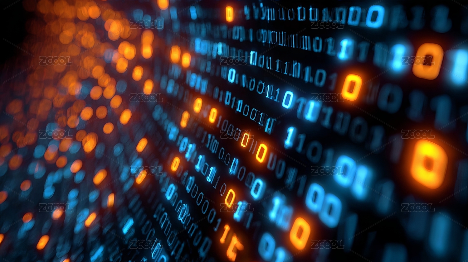 蓝色橙色二进制代码流光溢彩
