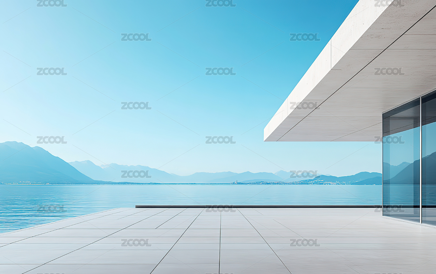 现代建筑临海泳池景观