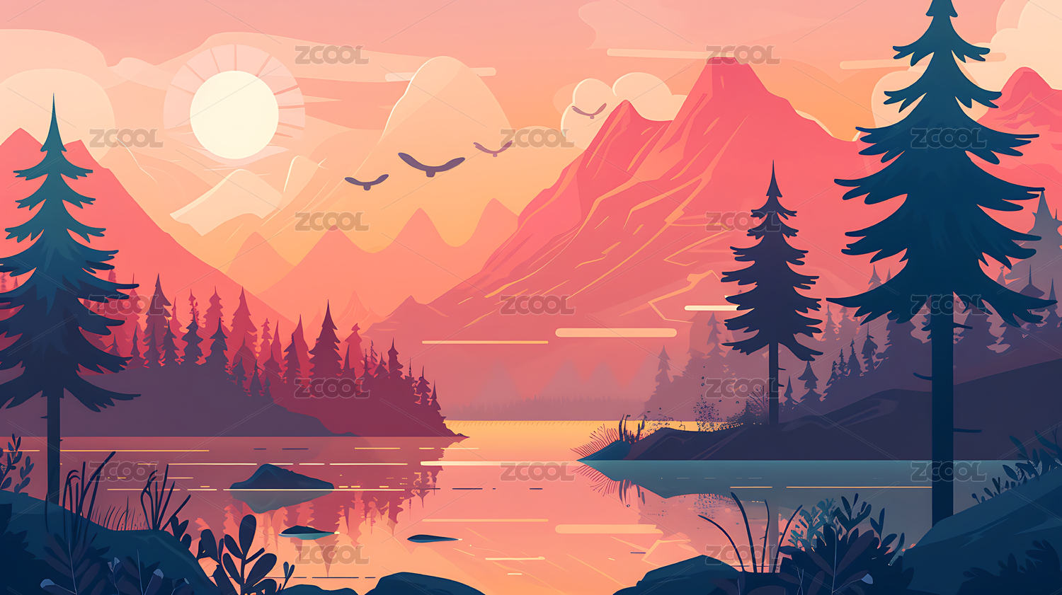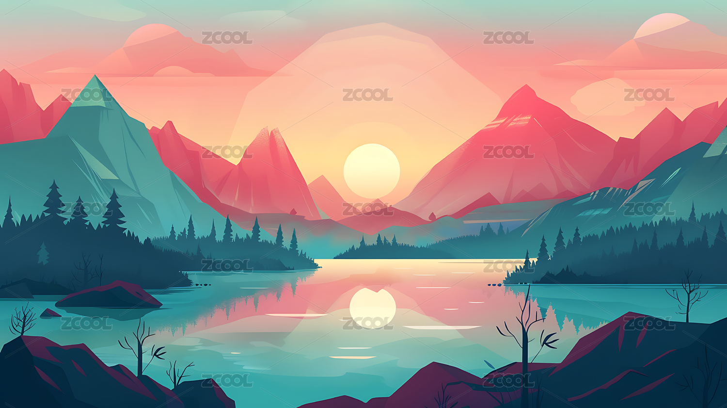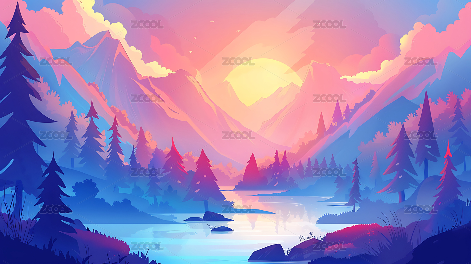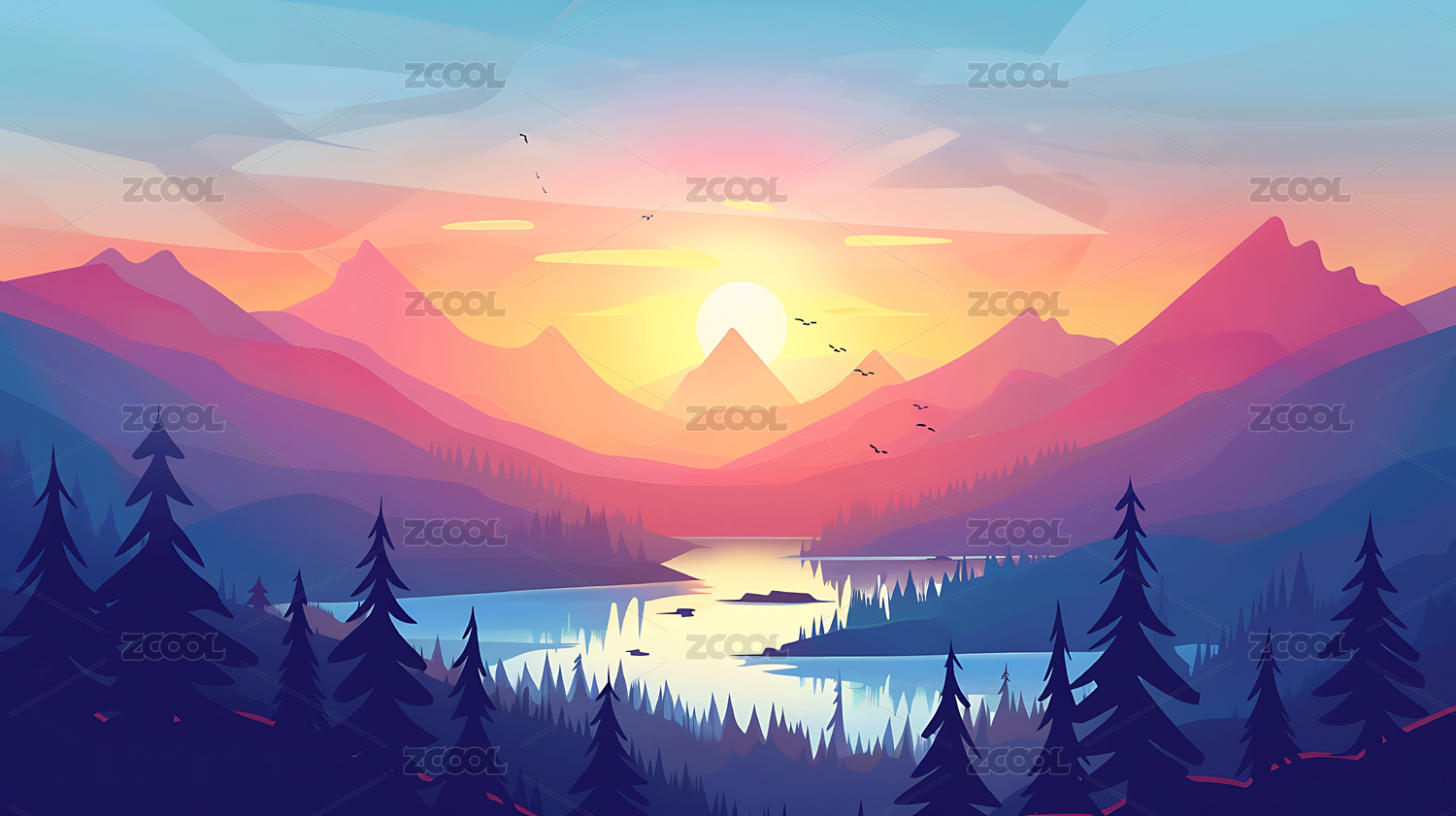 颜色,插图,美丽,自然,日出,山脉,风景,山谷,景色,天空