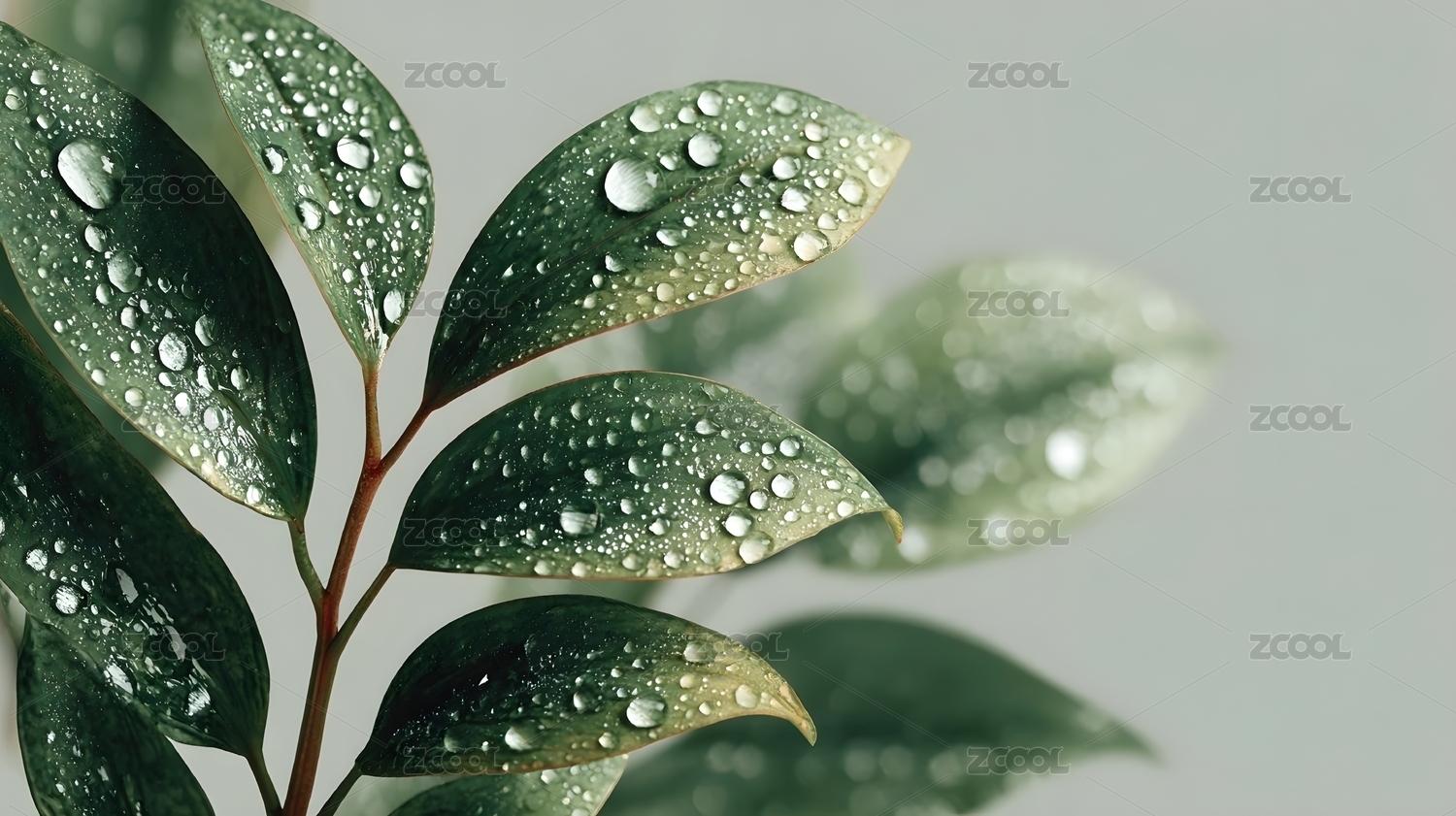 下雨天雨滴在叶子上特写雨水节气场景插图