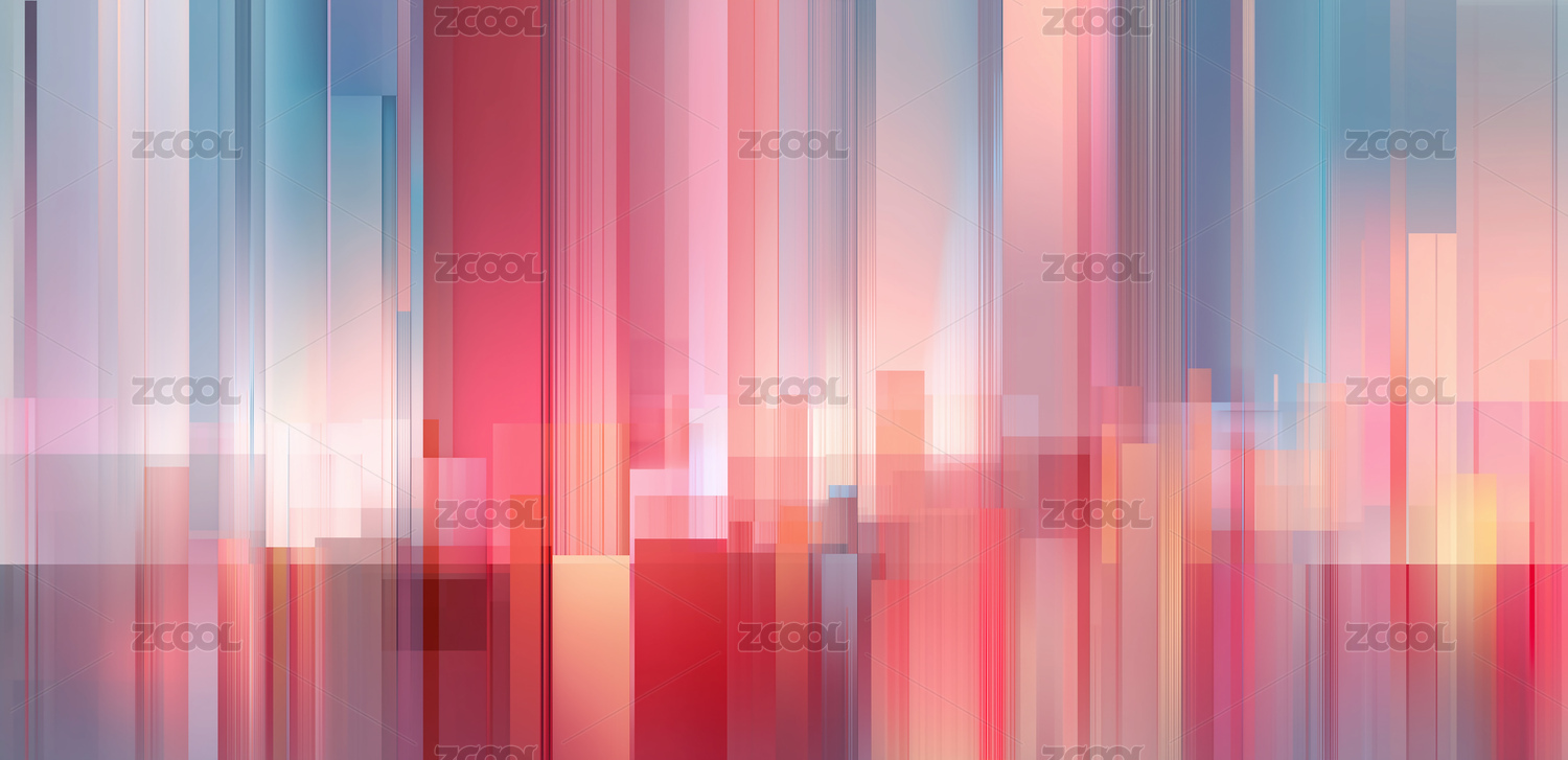 粉蓝色彩条交织呈现简约艺术的城市建筑视觉