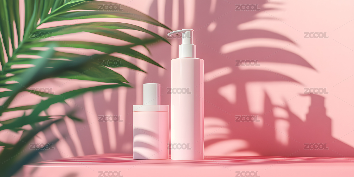 粉色,背景,瓶子,按压泵,植物,叶子,护肤品,乳液,面霜,清洁