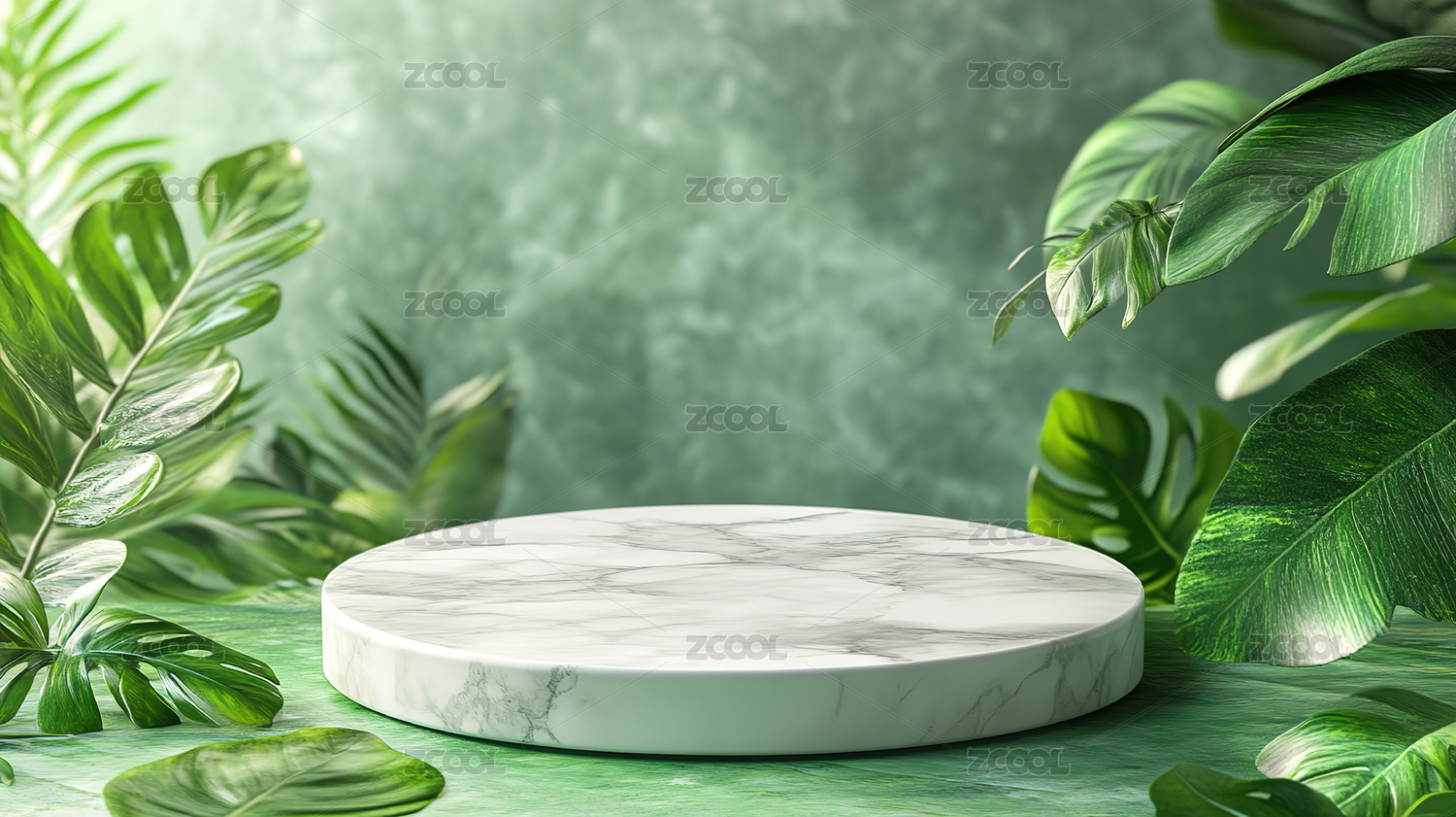 热带植物与大理石台面背景
