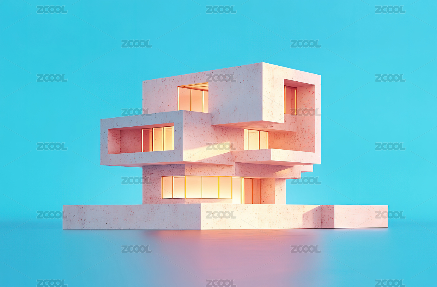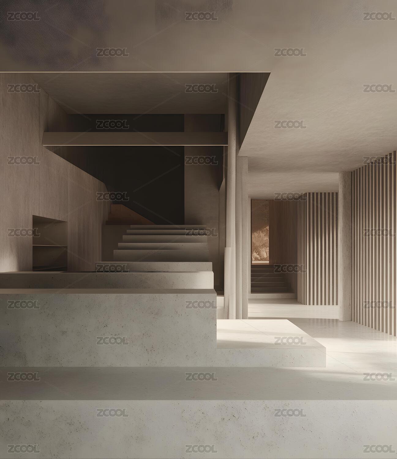 浅色创意感混凝土房间 三维渲染