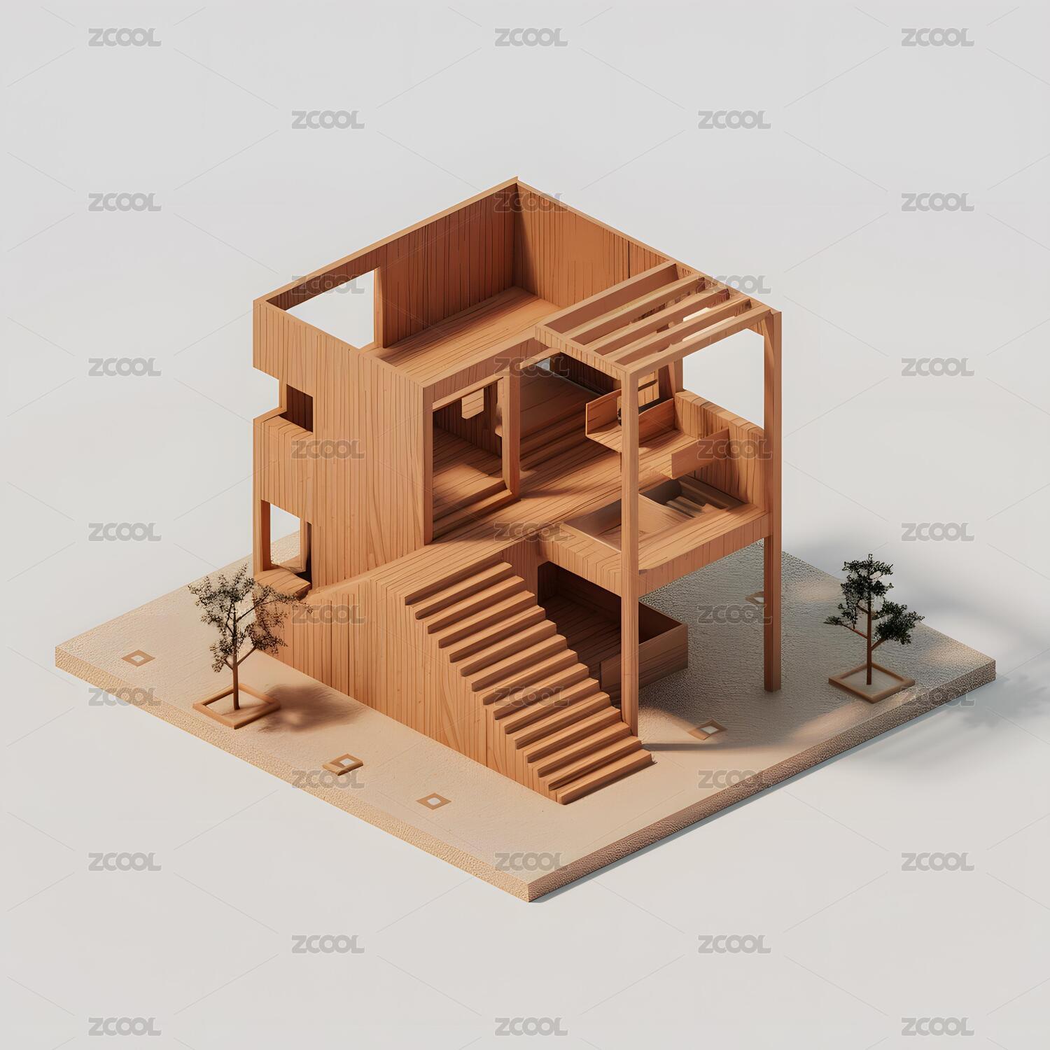 极简主义木质建筑模型