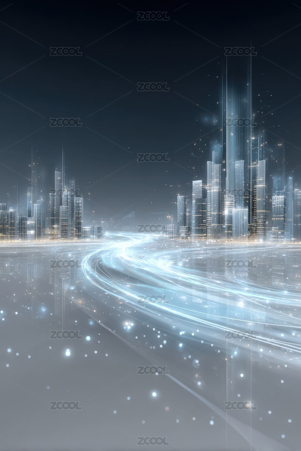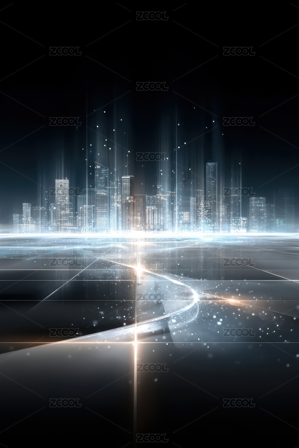 未来, 背景,夜晚, 城市, 高楼, 灯光, 道路, 桥梁, 科技, 建筑