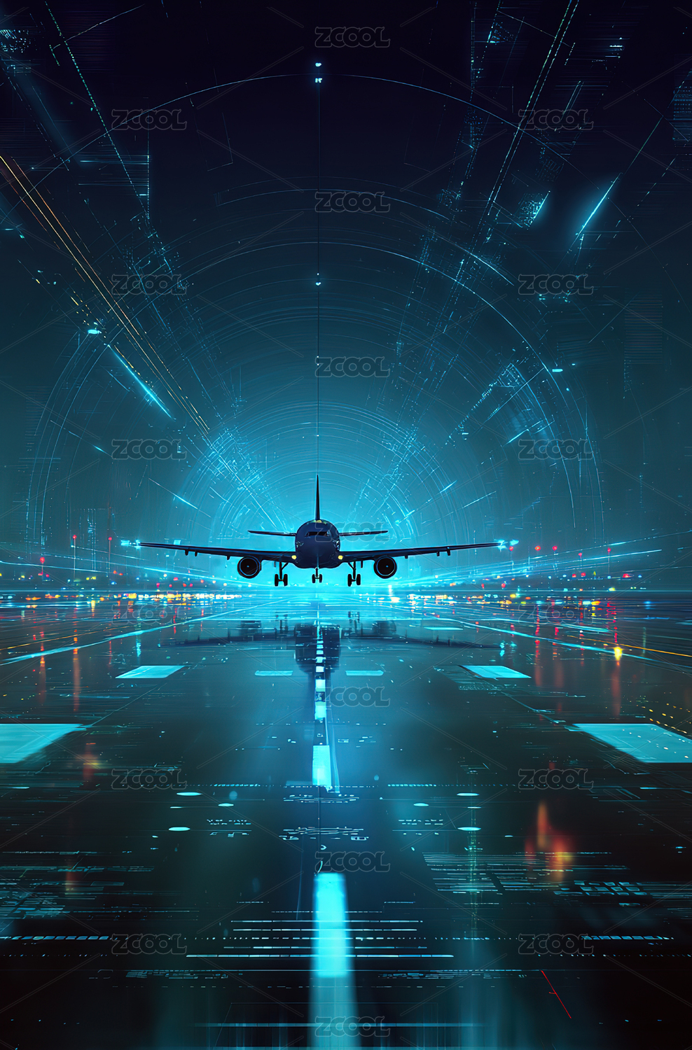 飞机在数字化跑道上降落