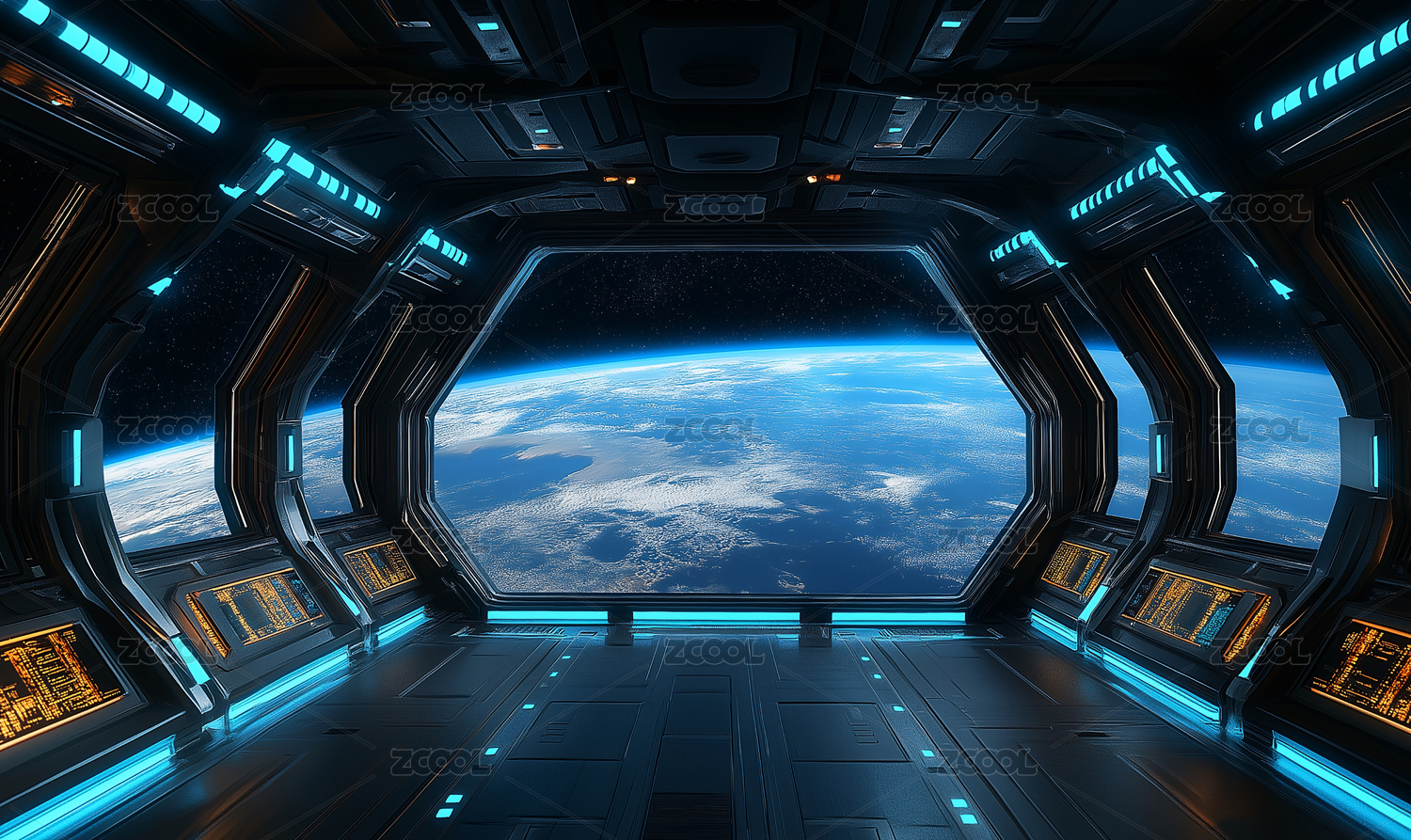 太空舱内眺望地球与星辰的壮丽景象