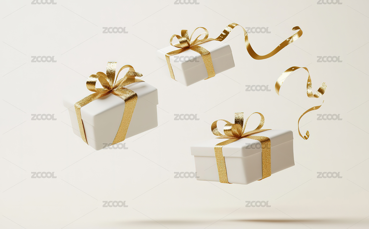 金色丝带白色礼物盒