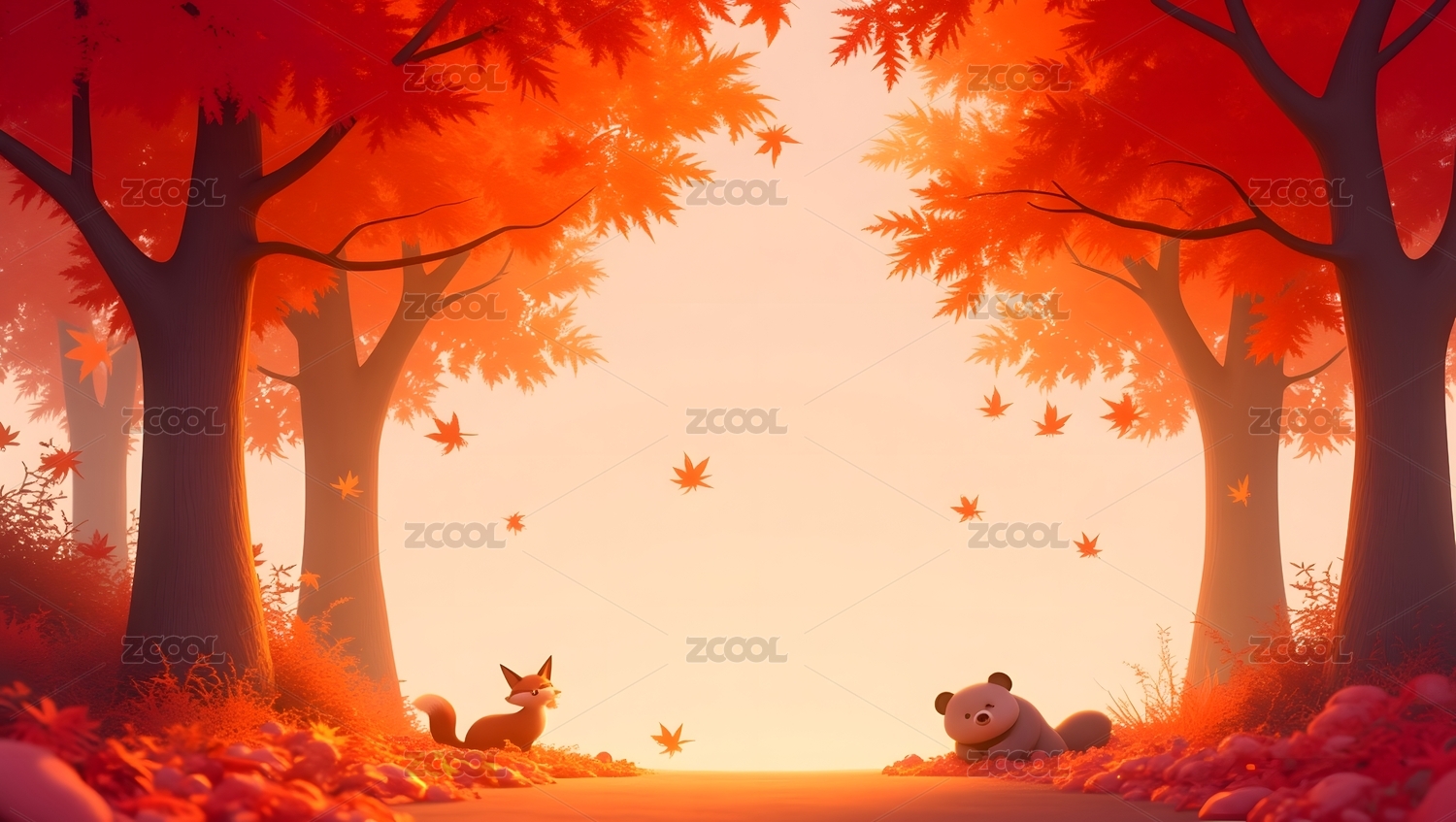 秋日森林动物温馨场景
