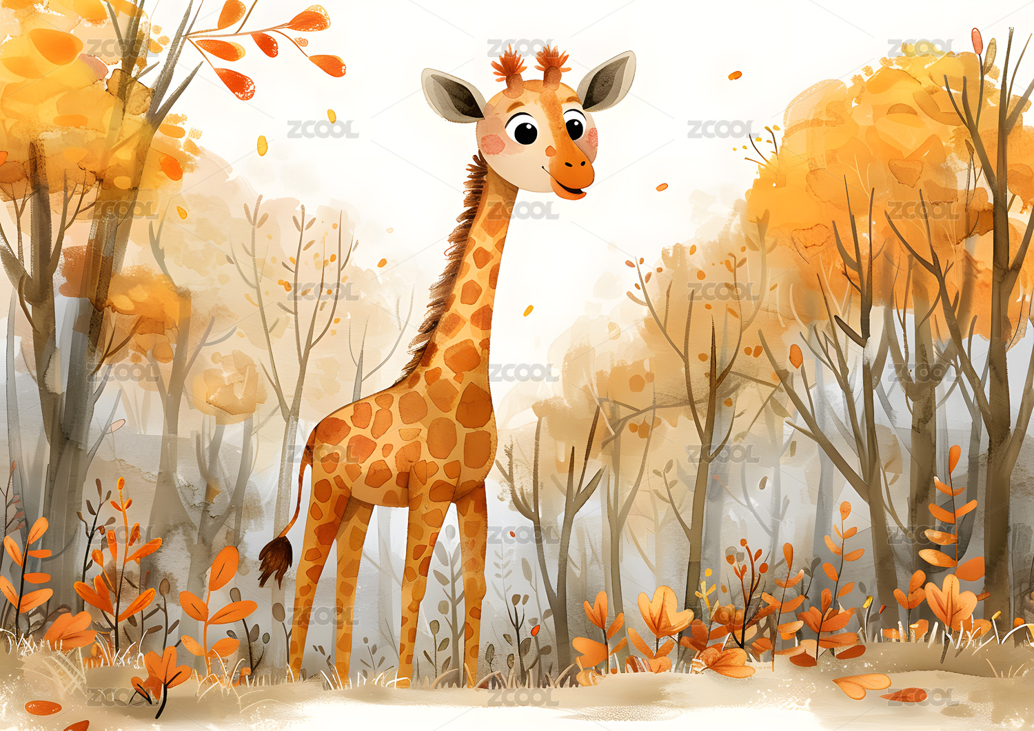 秋天下的可爱小动物宠物萌宠卡通漫画插画