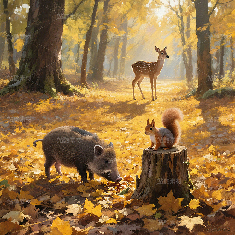 林间小动物共处画面