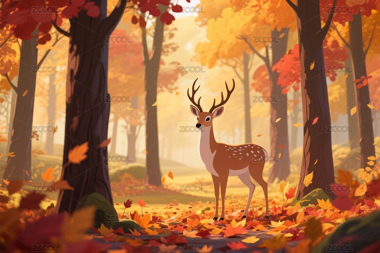 秋林中的小鹿插画