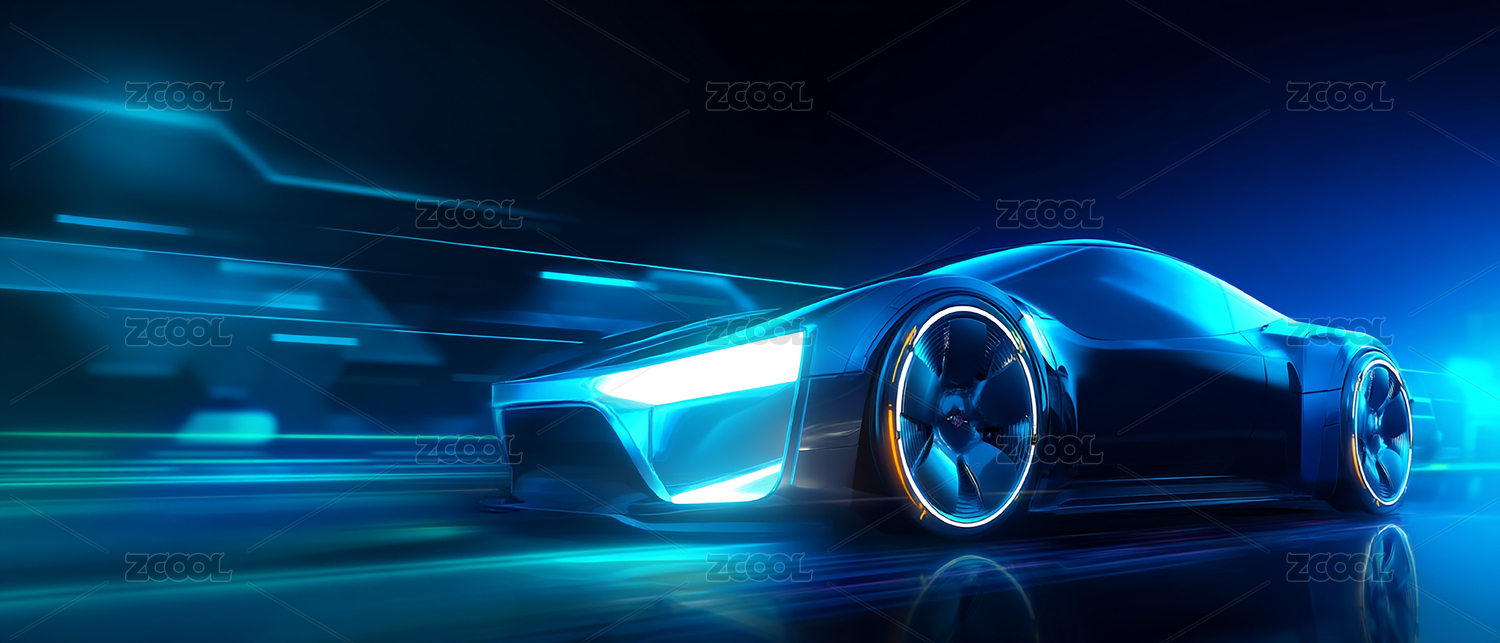 新能源未来科技概念蓝色发光汽车