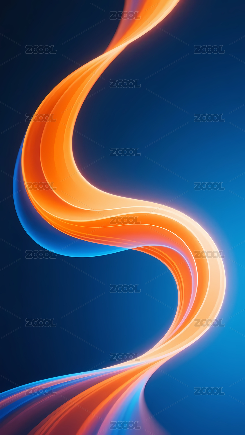 主体,蓝色,橙色,对比,黑色,动态,视觉,光带,流动,弯曲