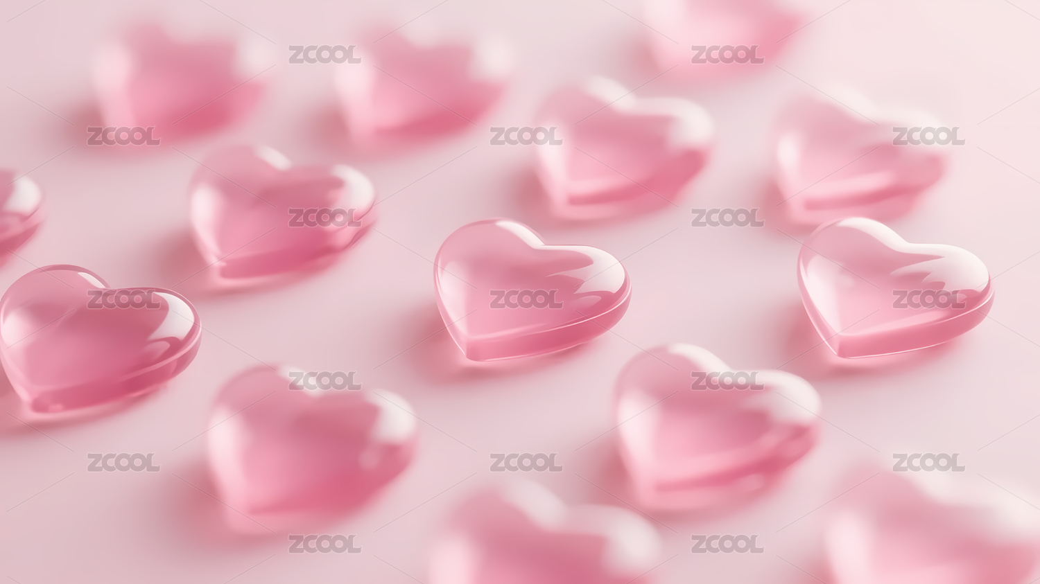 粉色心形透明物体排列