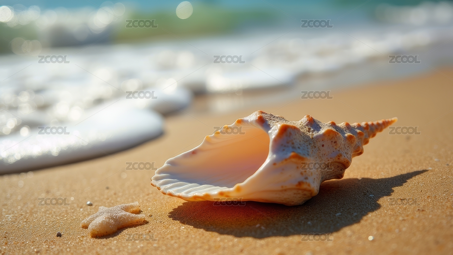 蓝天,自然,细节,白色,明亮,海螺,沙滩,海水,海岸,贝壳