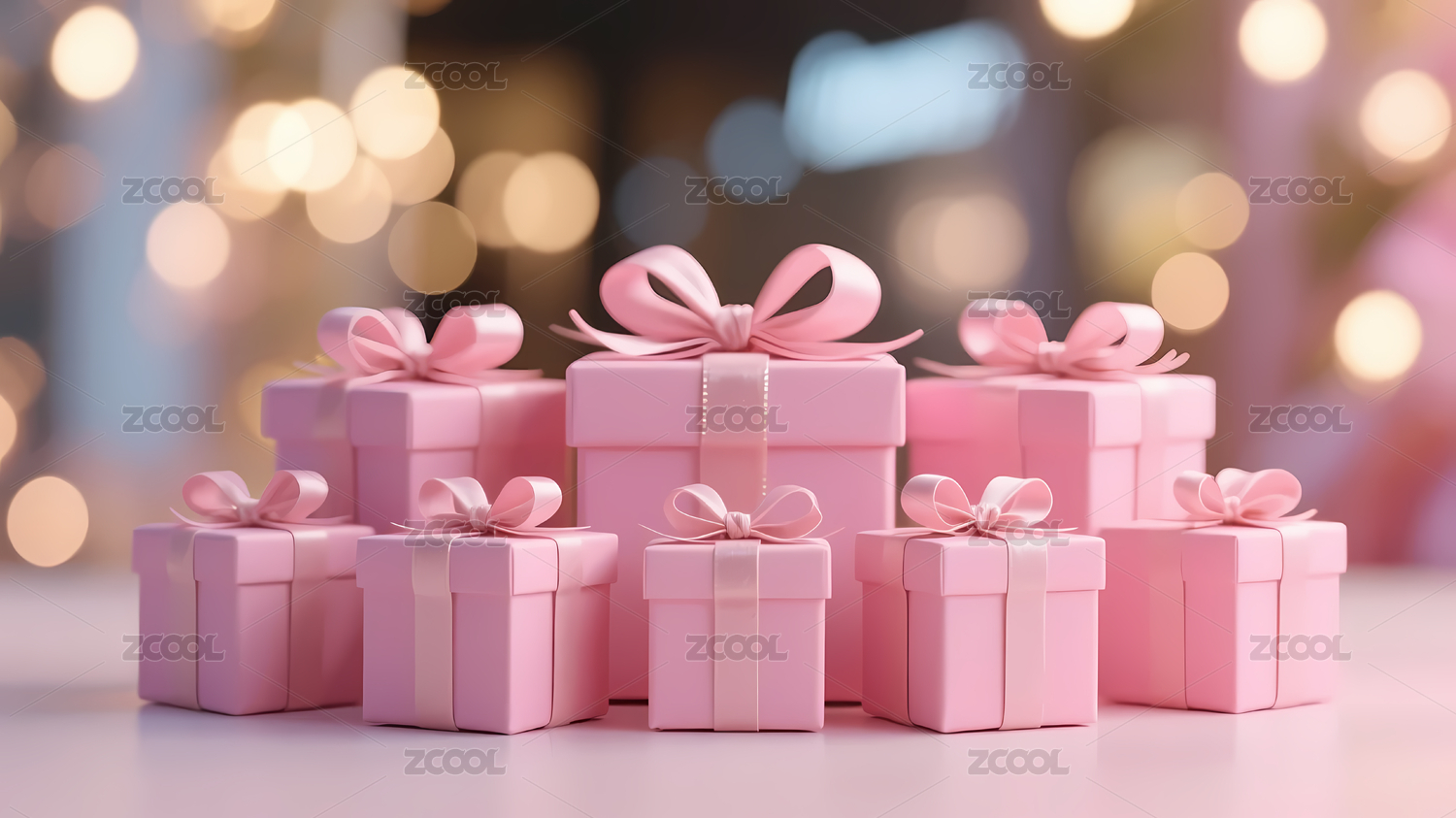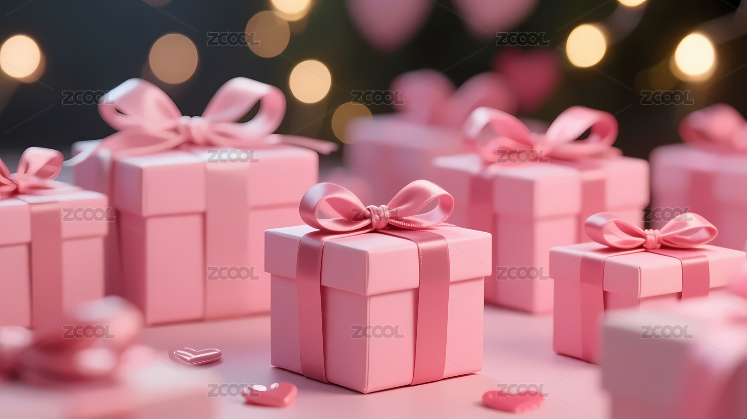 白色,光斑,装饰,粉色,心形,柔和,节日,温馨,蝴蝶结,礼盒