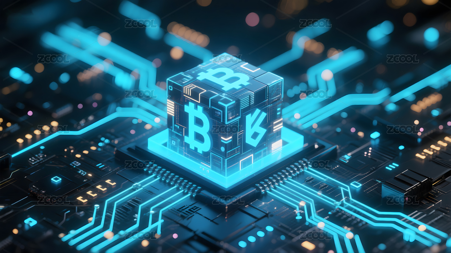 透明立方体比特币电路板