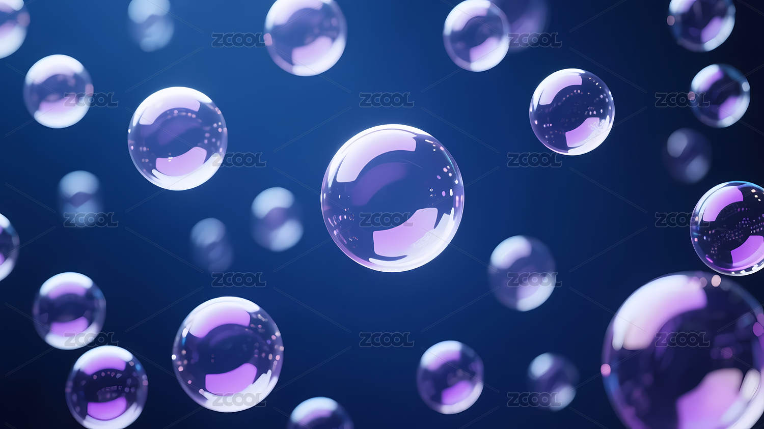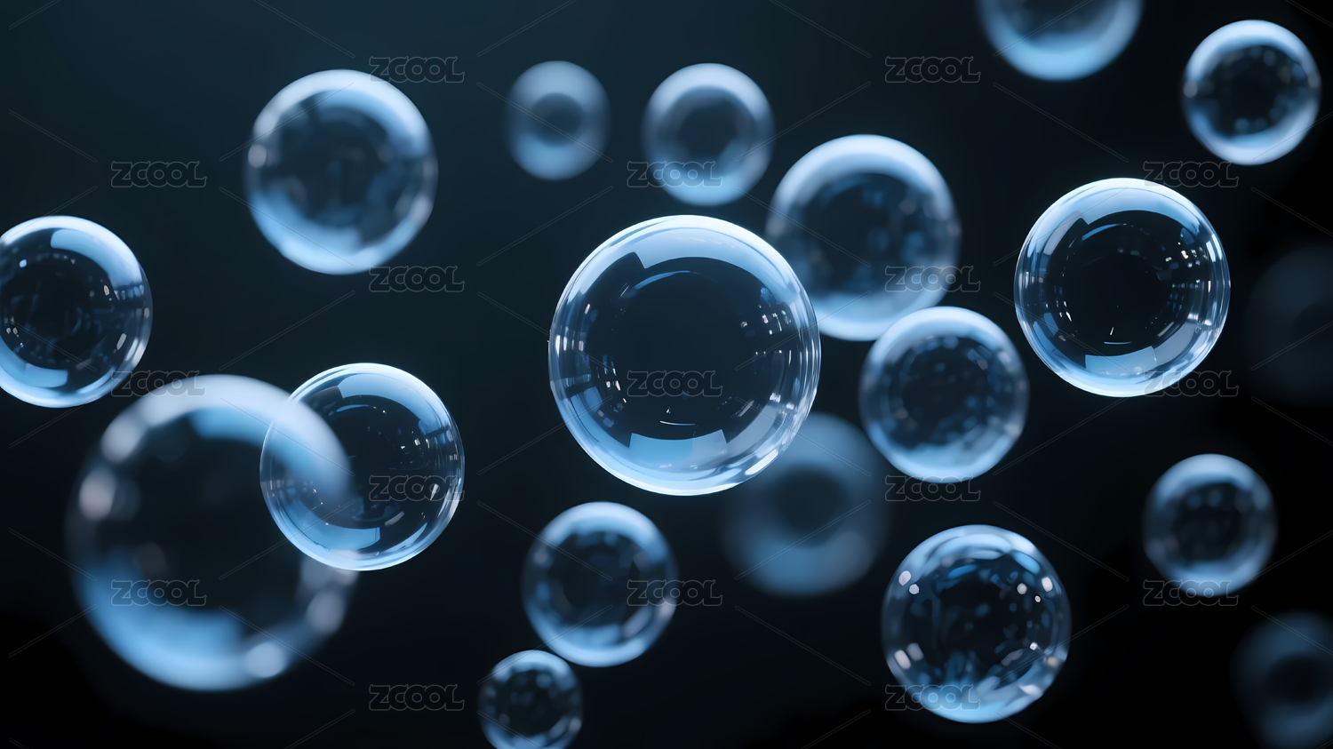 蓝色,渐变,透明,大小,气泡,漂浮,水珠,清澈,水面,深浅