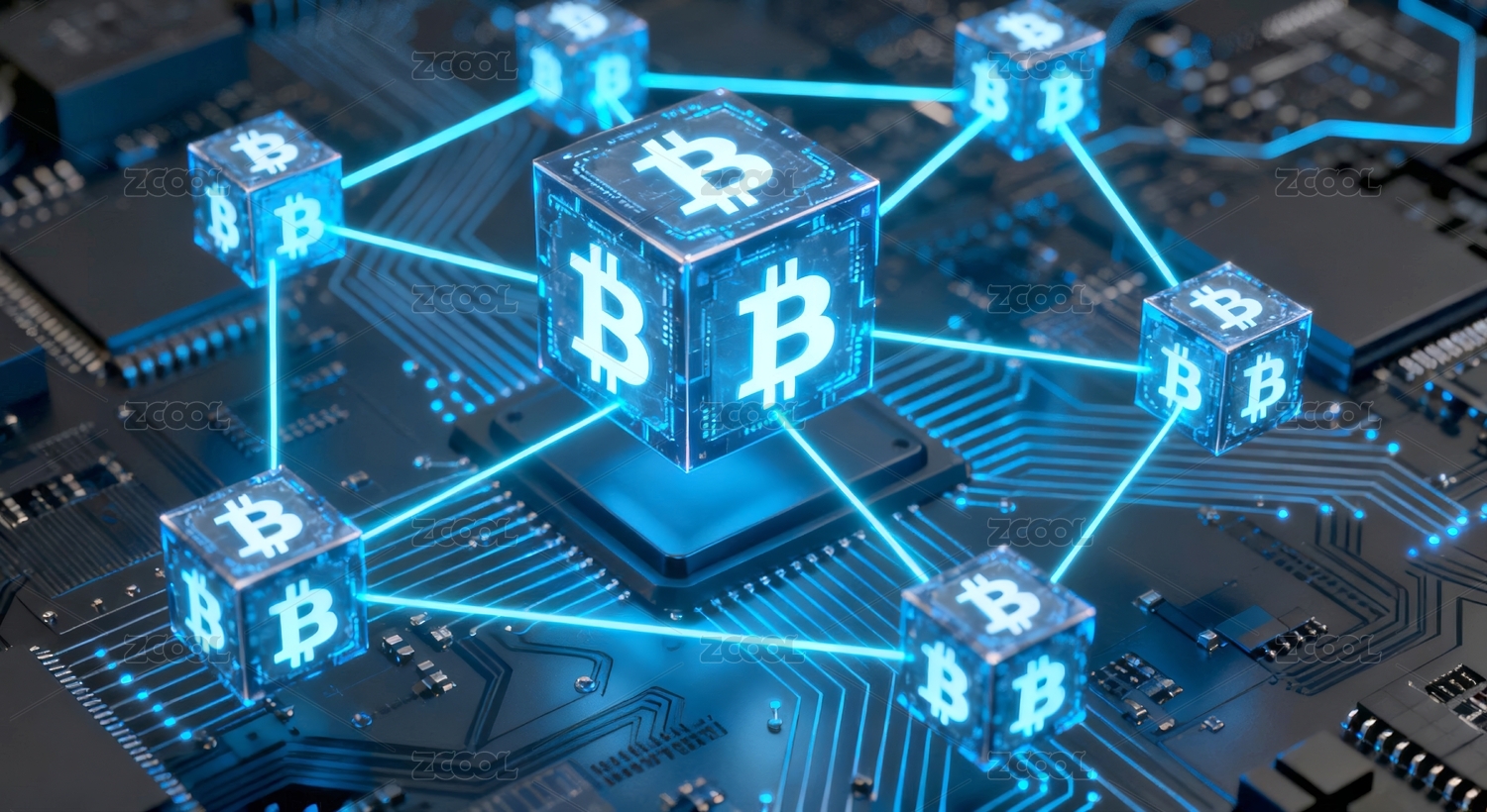 蓝色,紫色,电路板,电子,科技,未来,魔方,比特币,复杂,立方体