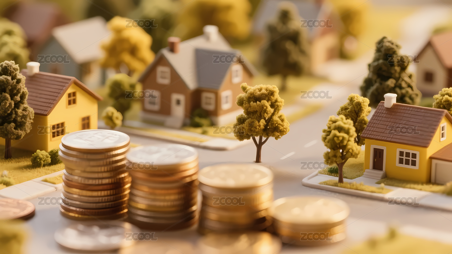 彩色小屋与硬币堆叠