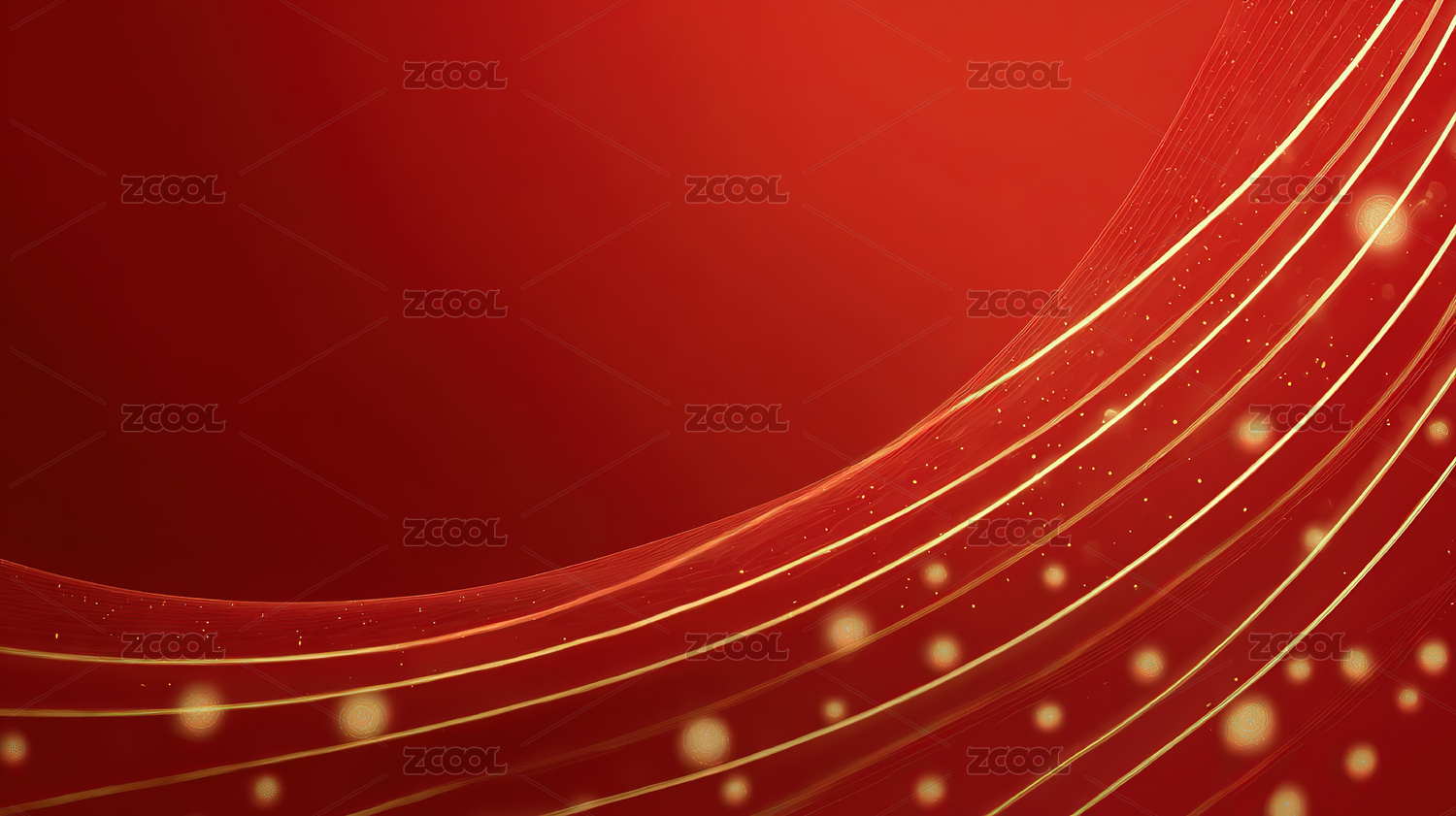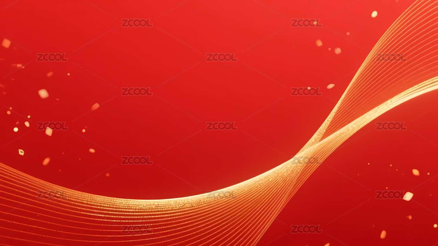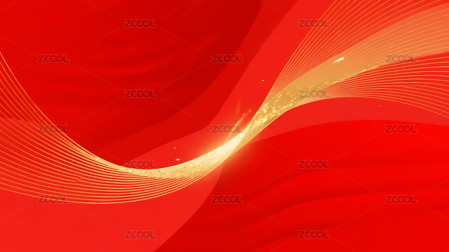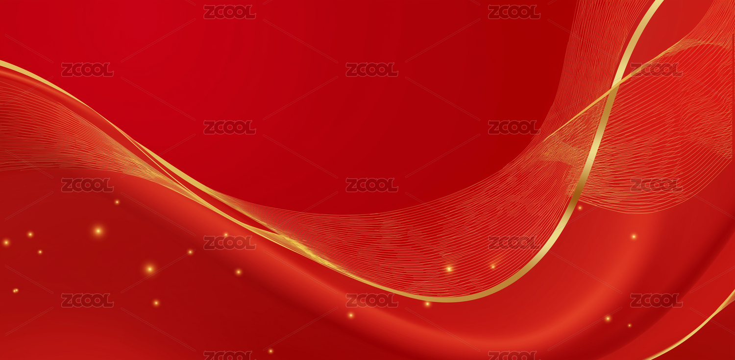 宽幅喜庆发光粒子动感曲线红色丝绸背景