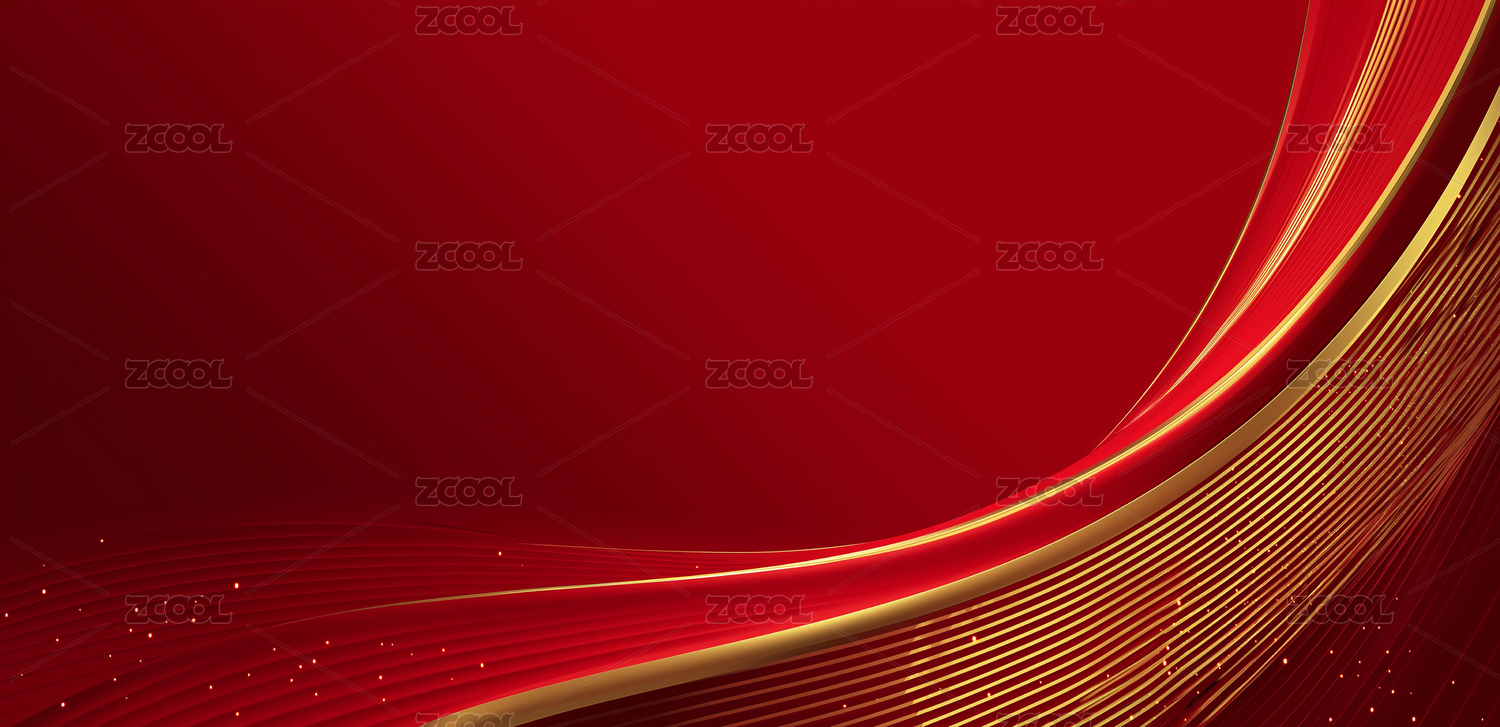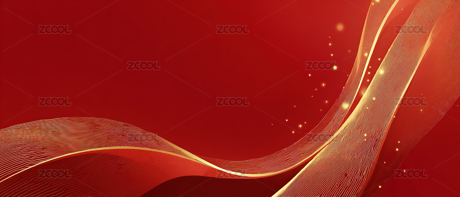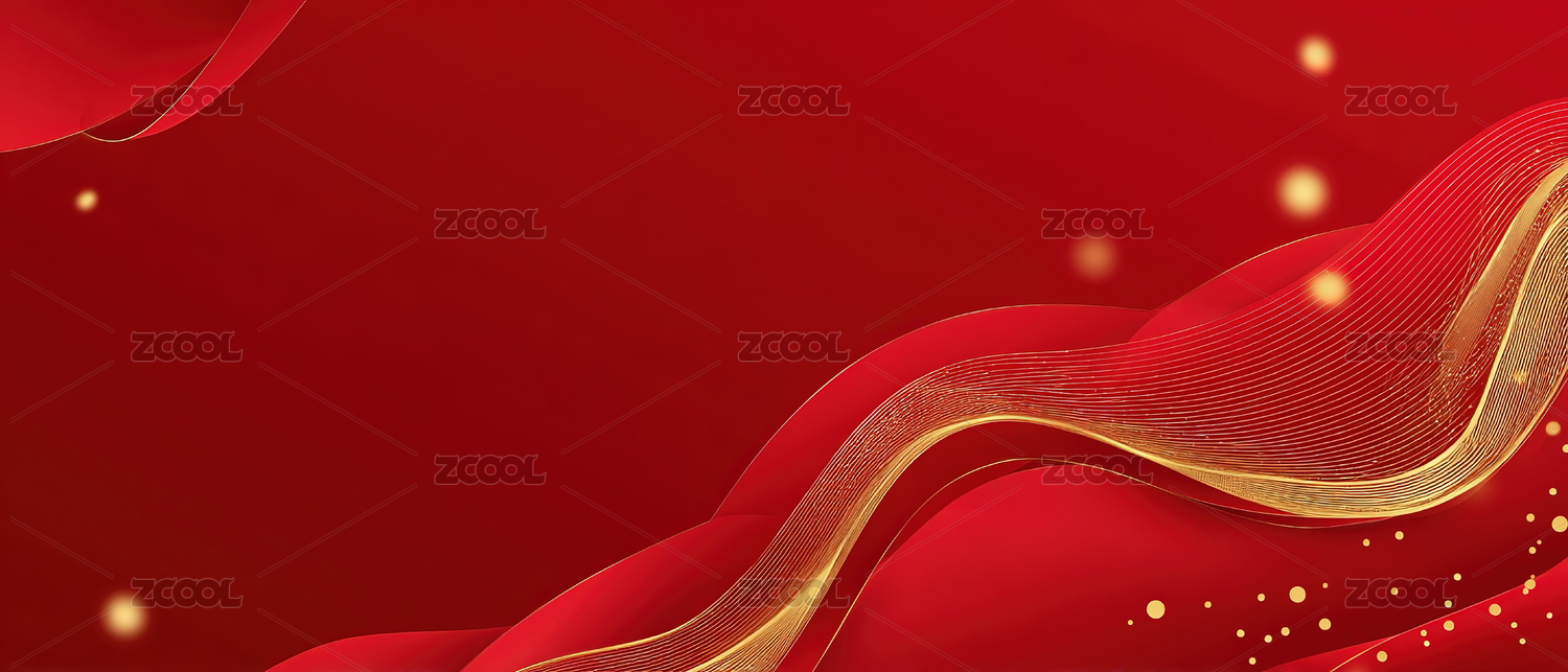 宽幅喜庆发光粒子动感曲线红色丝绸背景