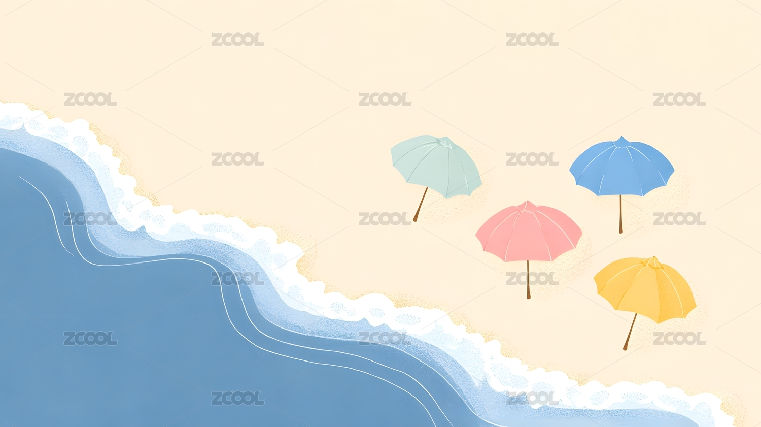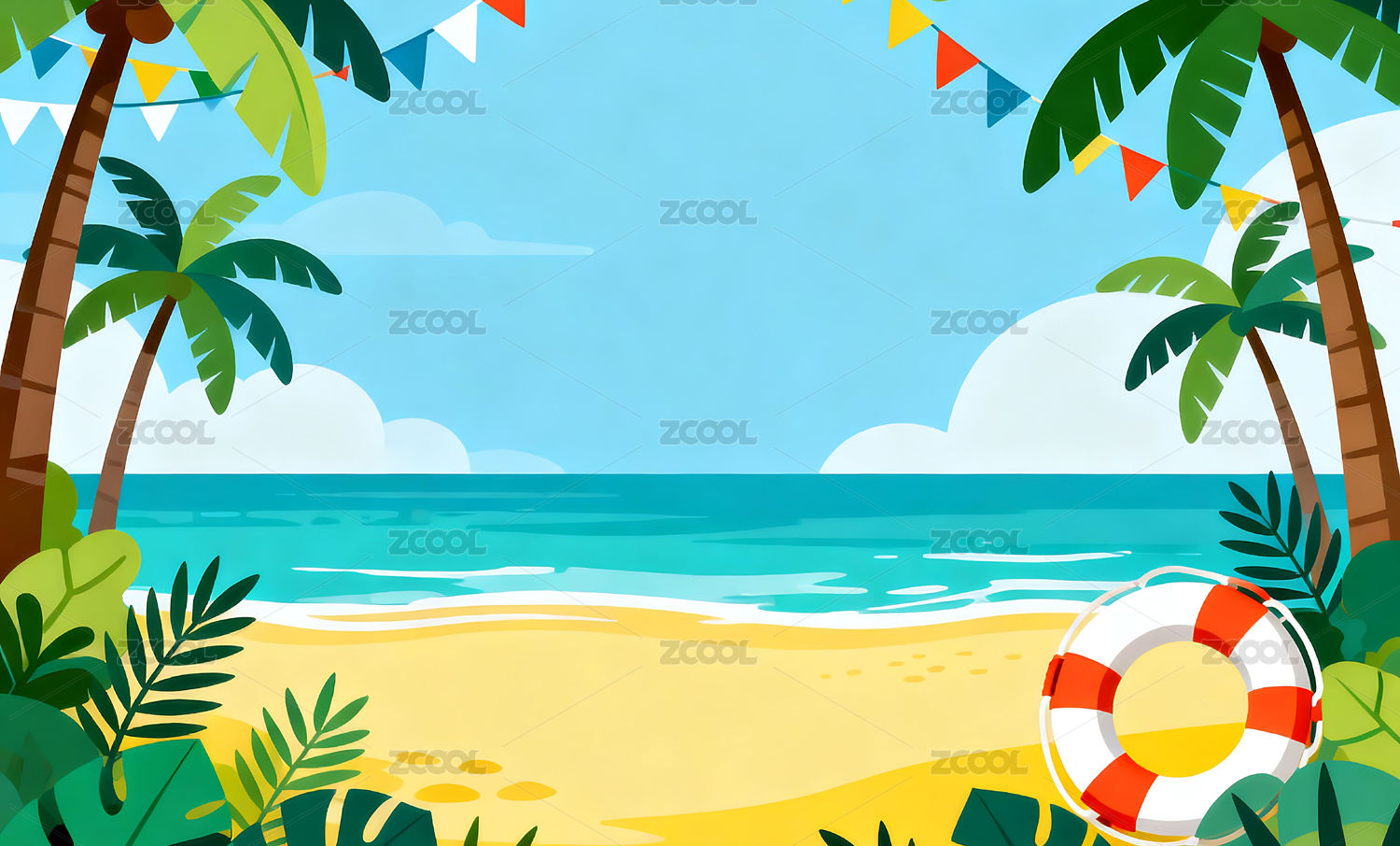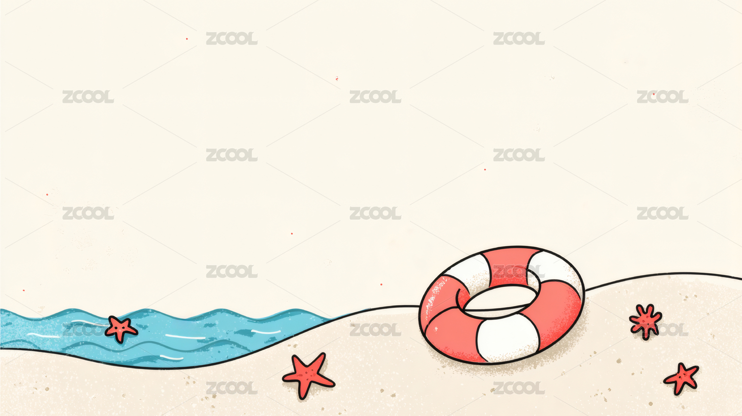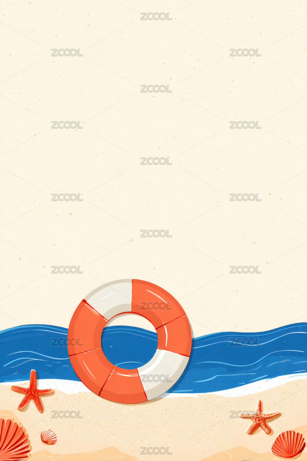 夏天,海滩,沙滩,游泳圈,海星,插画,背景,设计,装饰,可爱的