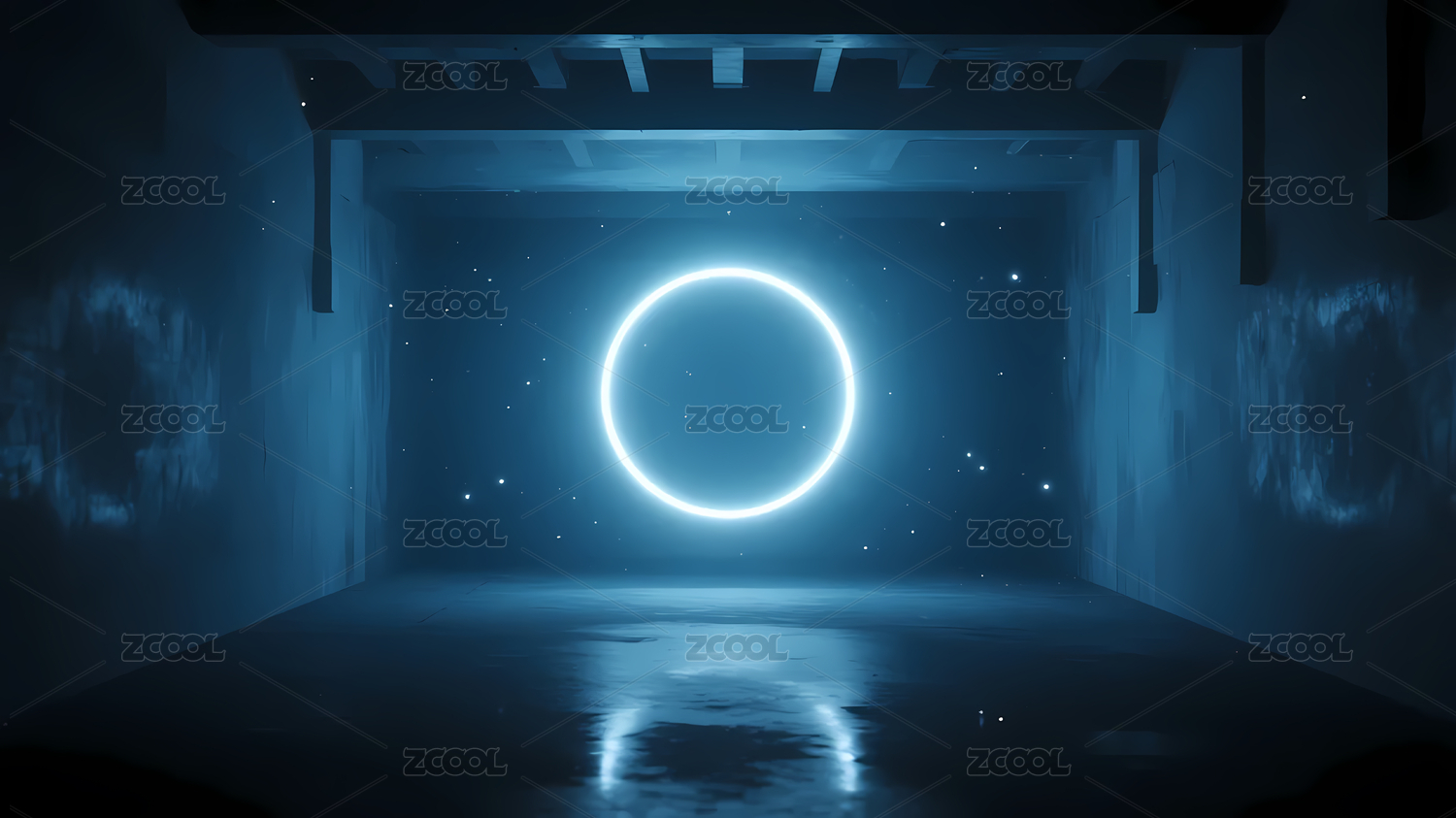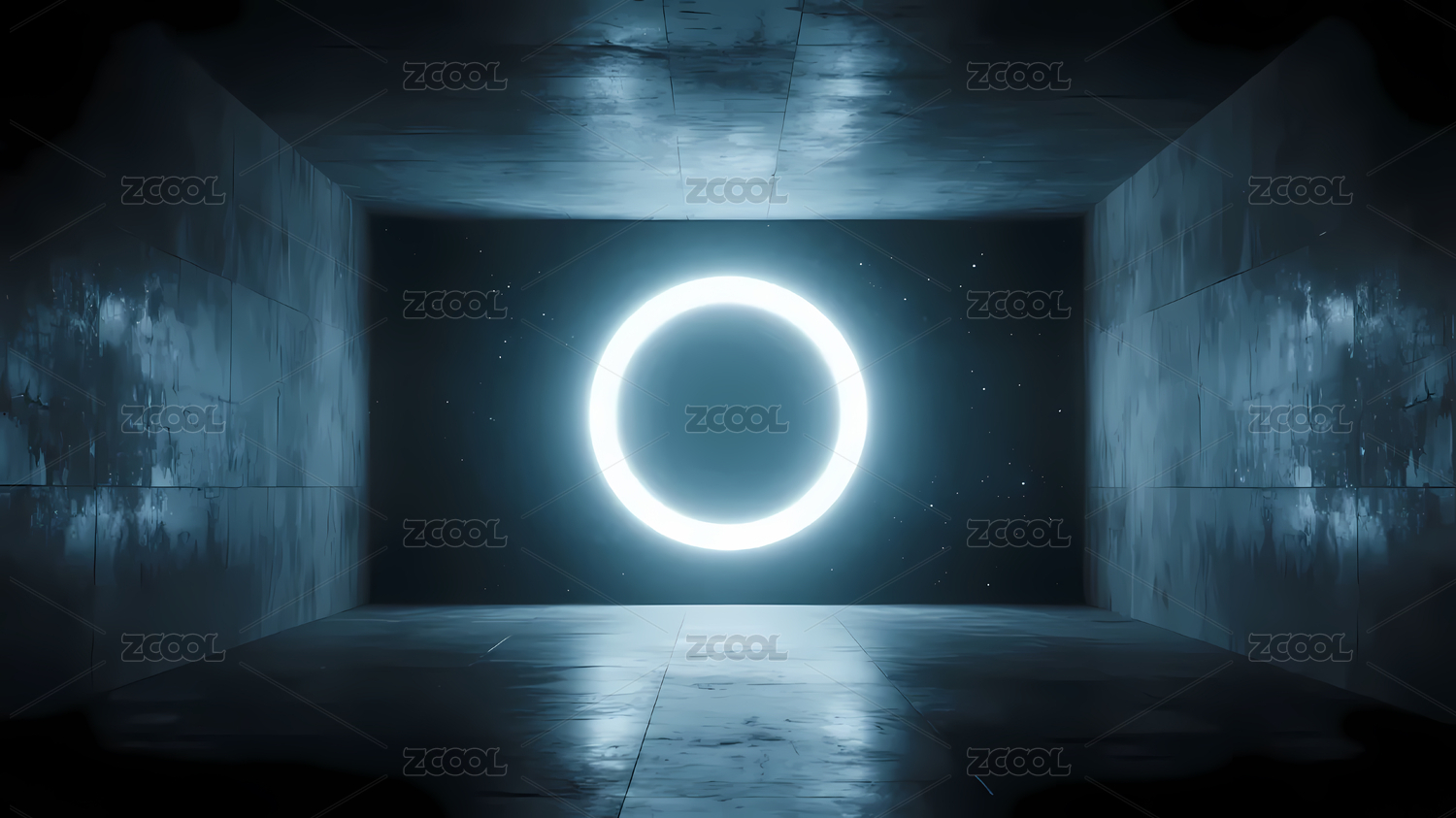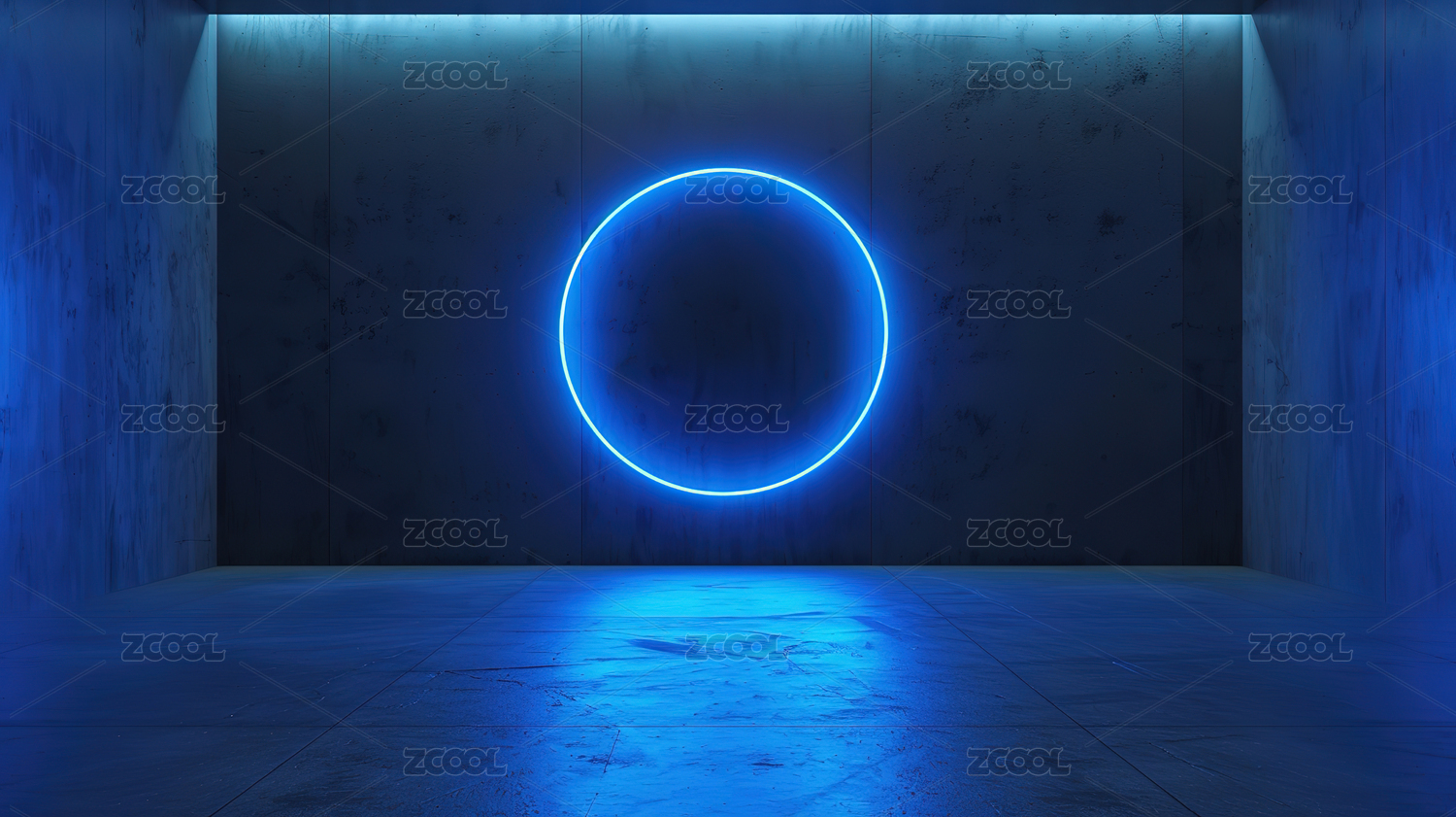 背景,深蓝,发光,光环,白色,圆形,混凝土,房间,冷色,光斑