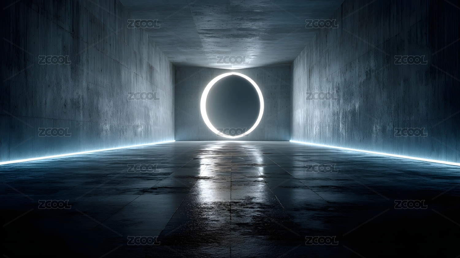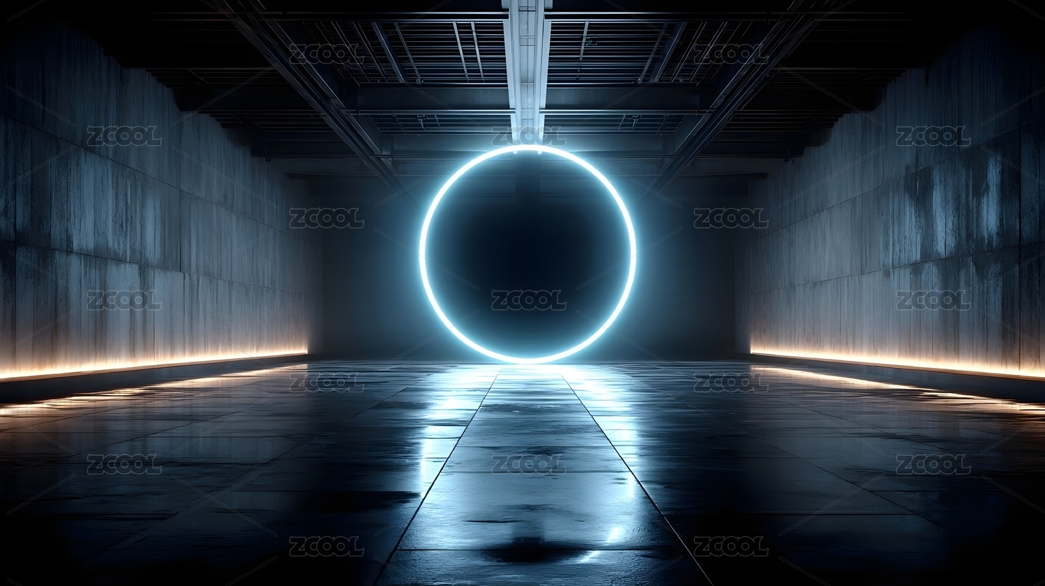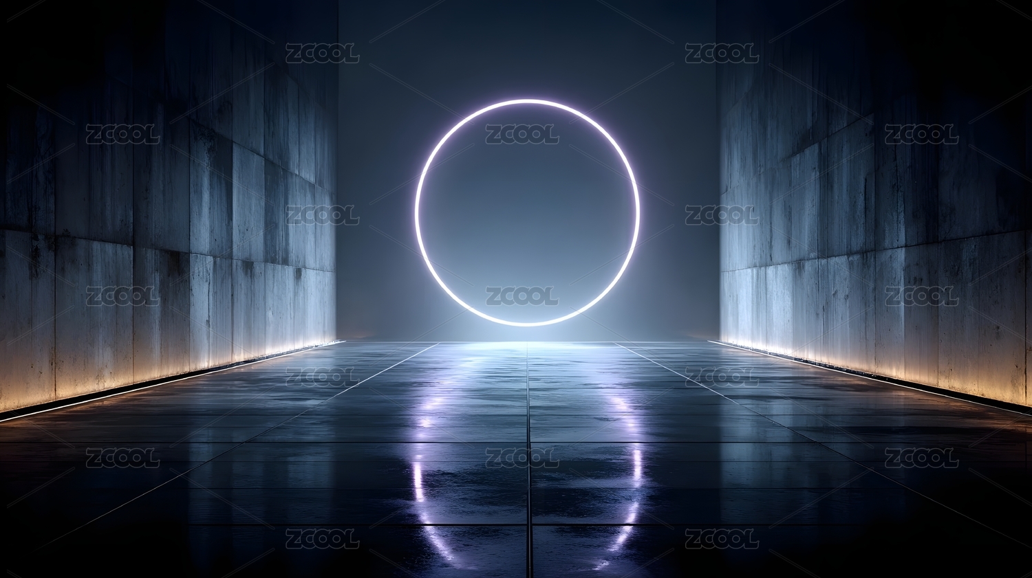 背景,深蓝,发光,光环,白色,圆形,混凝土,房间,冷色,光斑