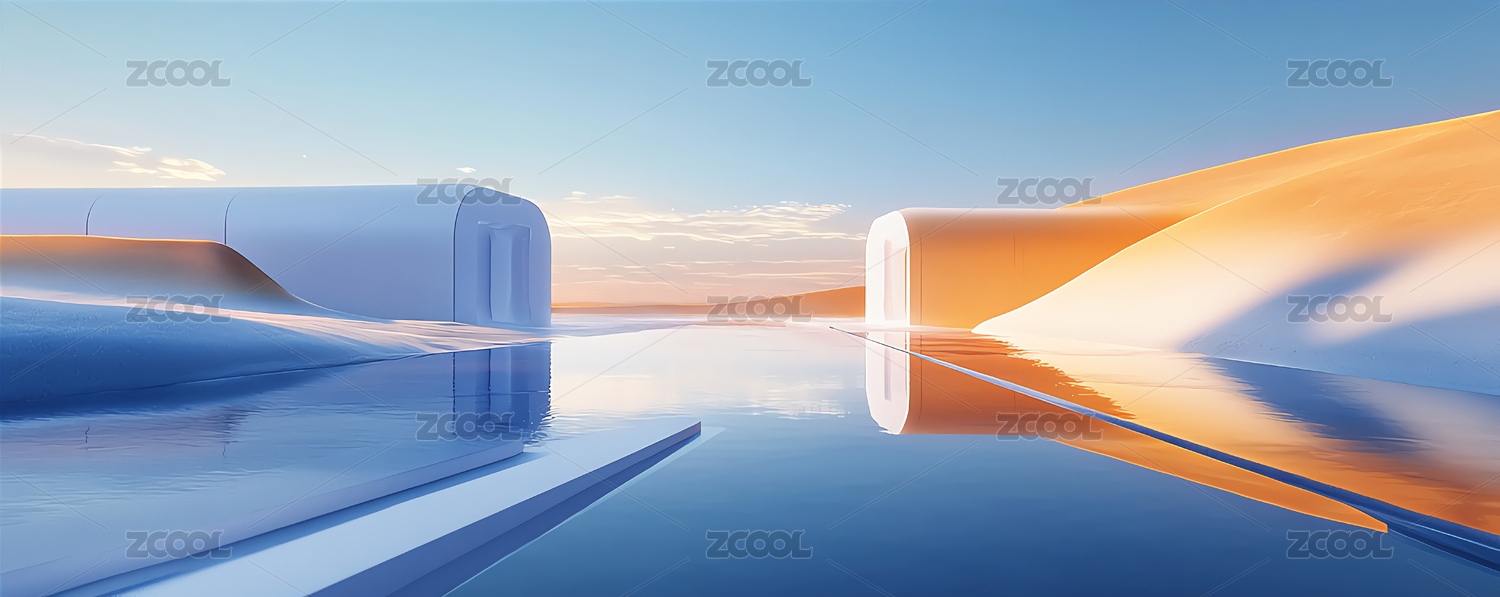 现代,极简,背景,建筑,三维,场景,蓝天,白云,白昼,3D