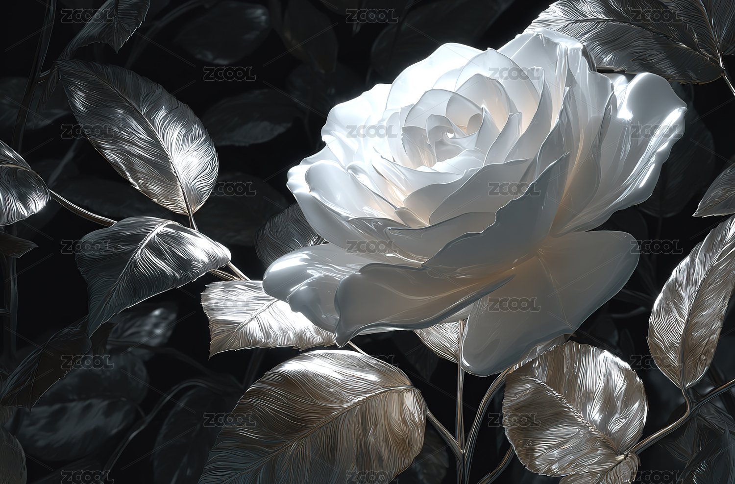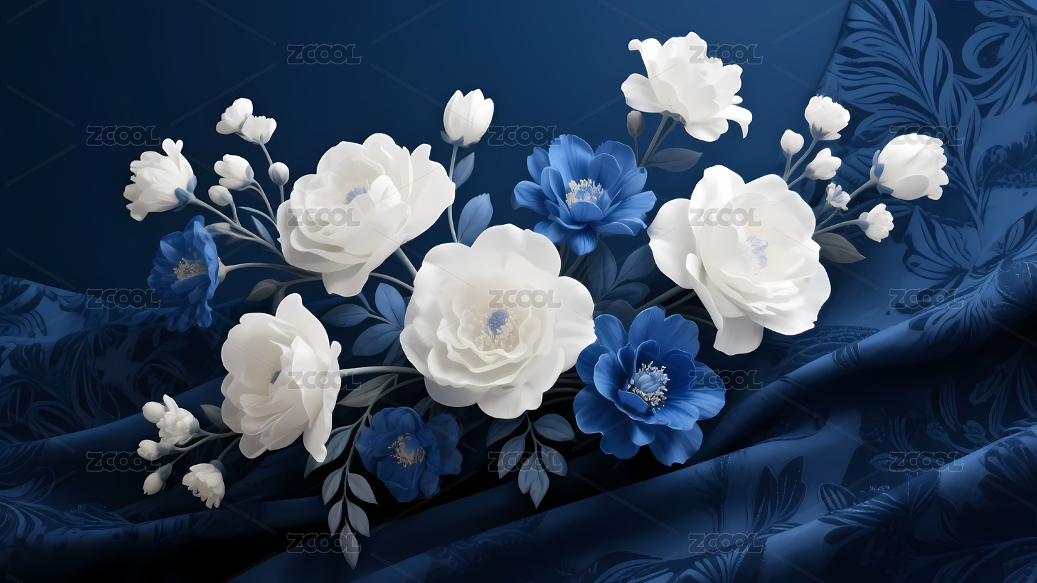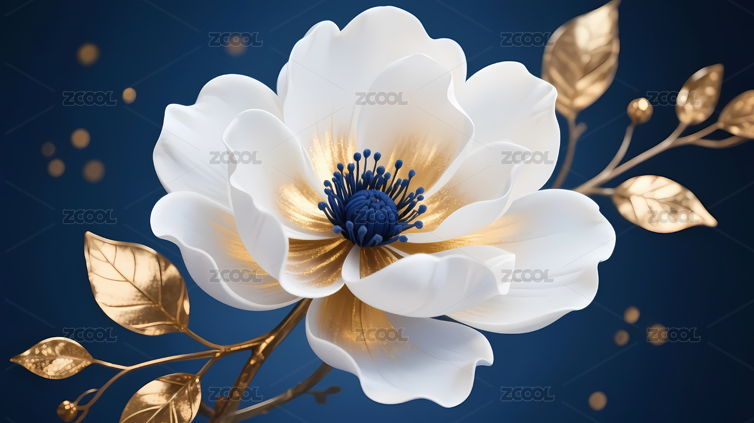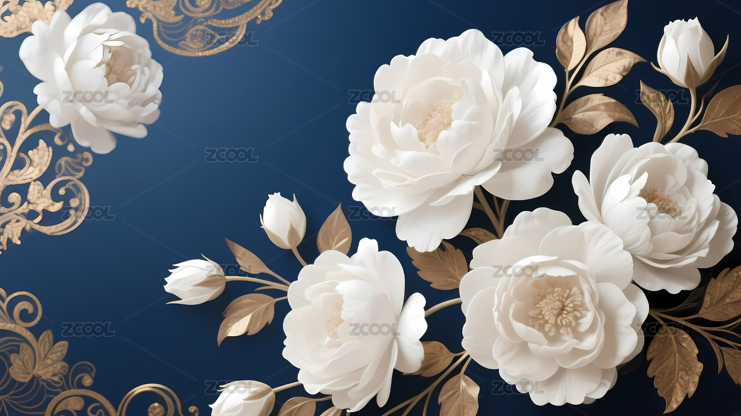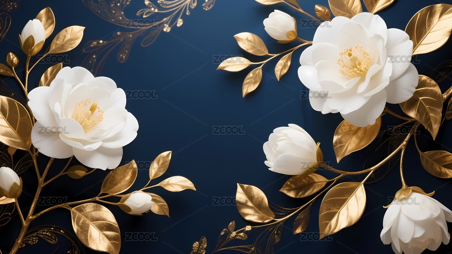 金色,背景,深蓝,花朵,白色,叶子,优雅,静谧,幕布,装饰
