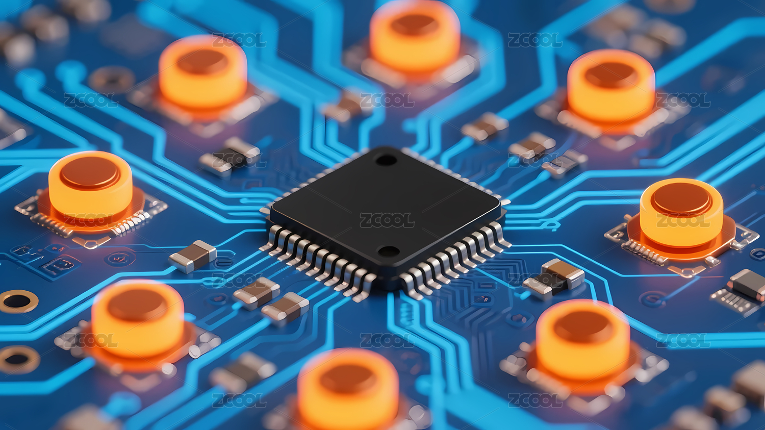 蓝色电路板黑色芯片
