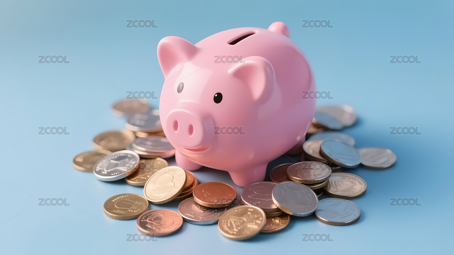 背景,主体,色彩,粉色,浅蓝,硬币,散落,明亮,储蓄罐,多色
