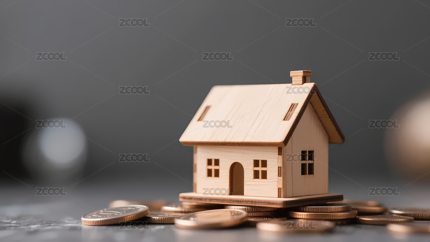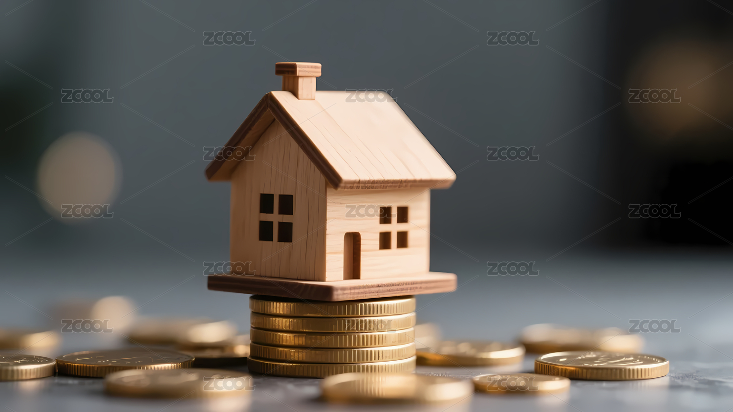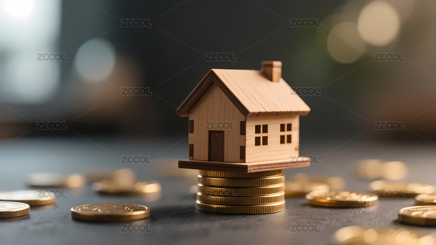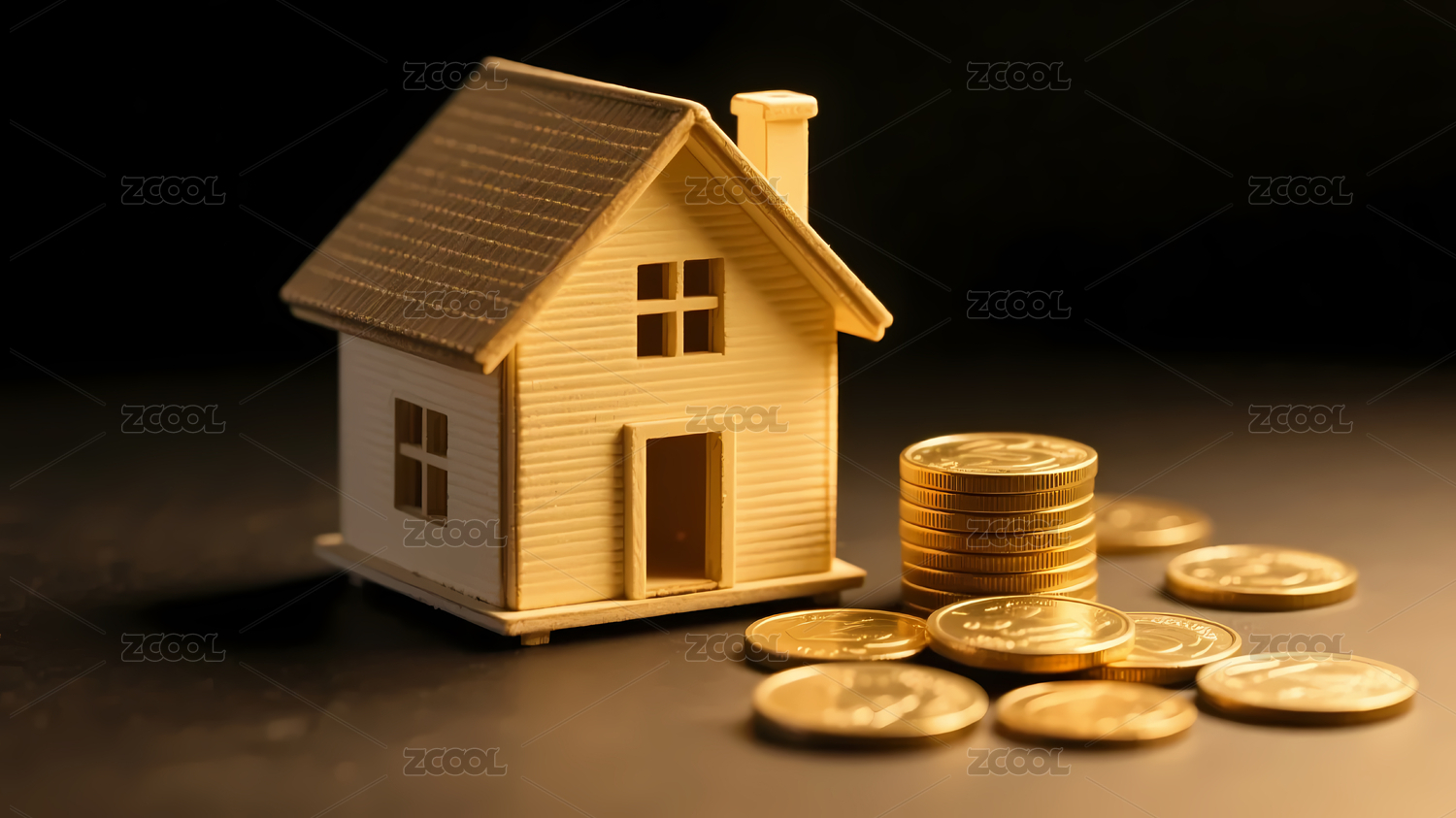 木质房屋与金色硬币