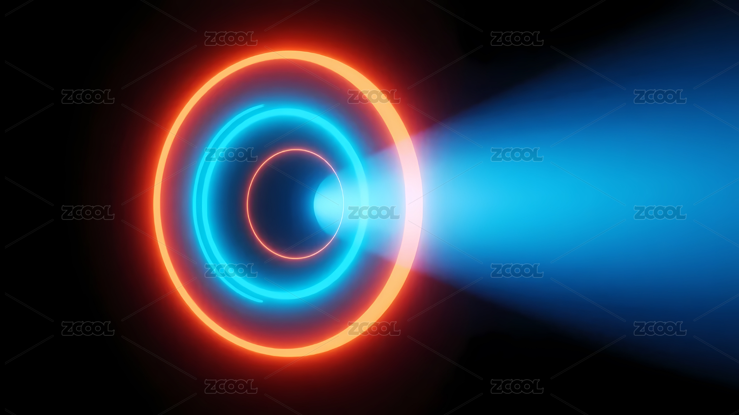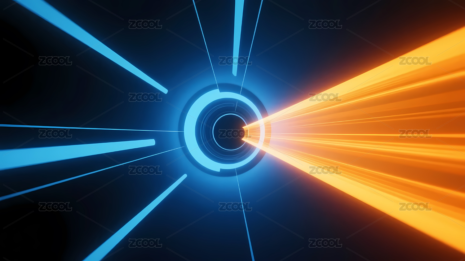 蓝色,背景,主体,光束,黑色,橙色,发光,圆环,射出,右侧