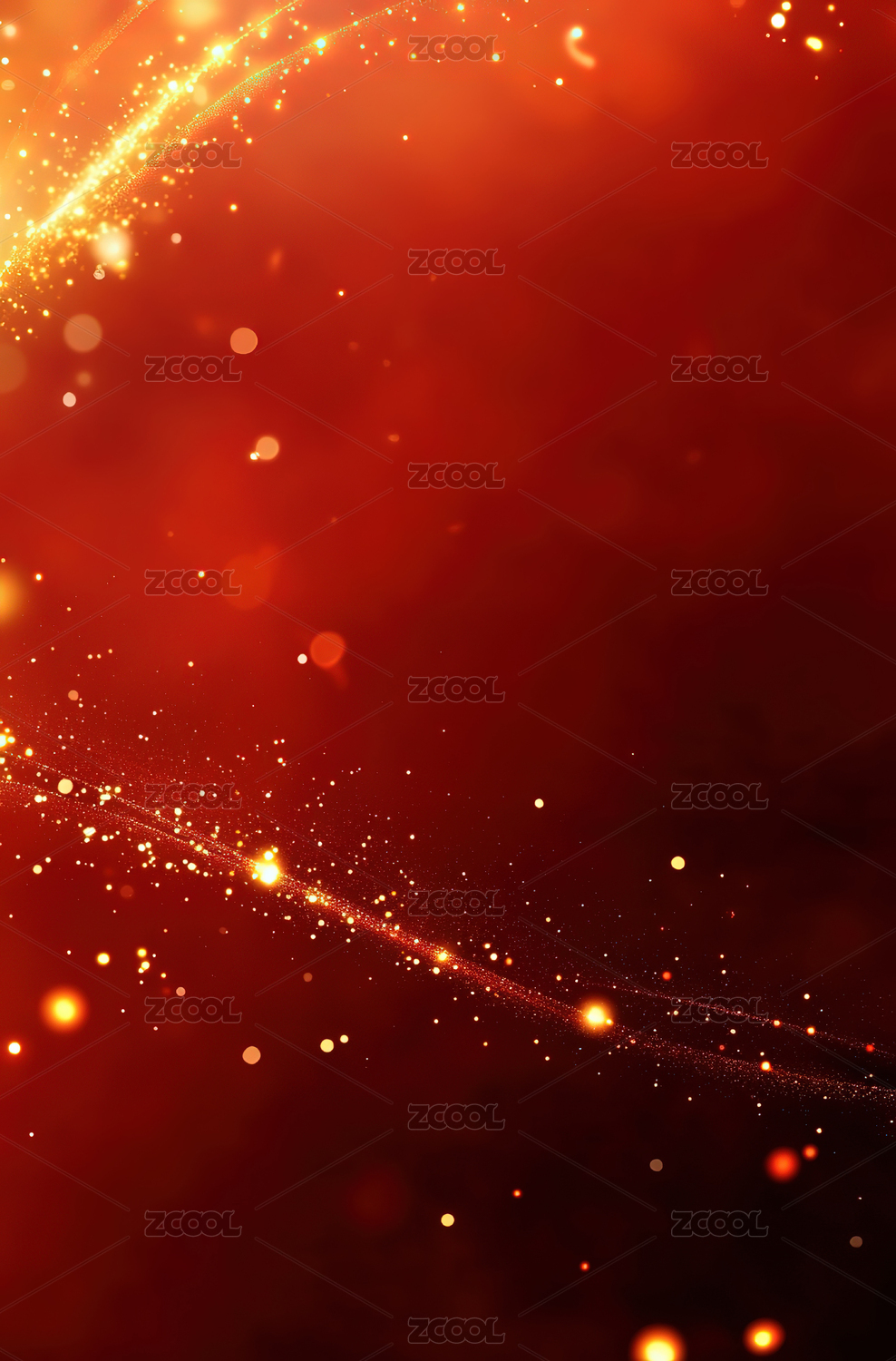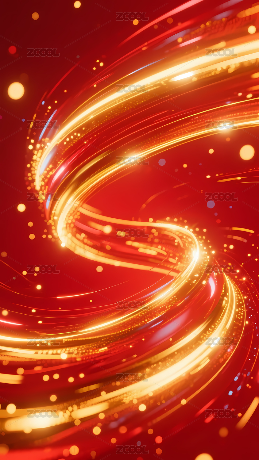 红色背景下的金色光效线条图案