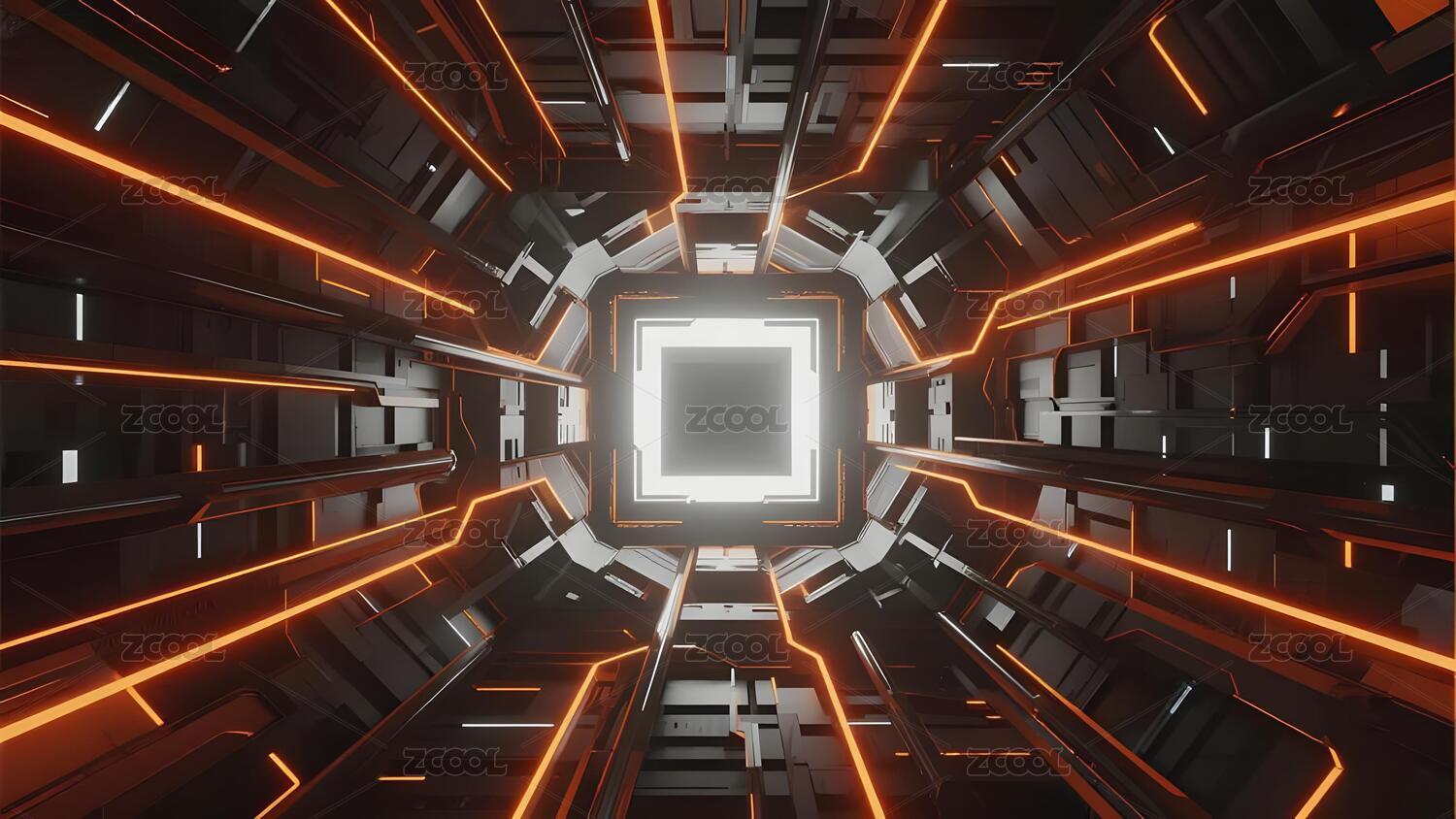 蓝色,黄色,深色,光效,未来,科技,结构,灯光,方形,隧道