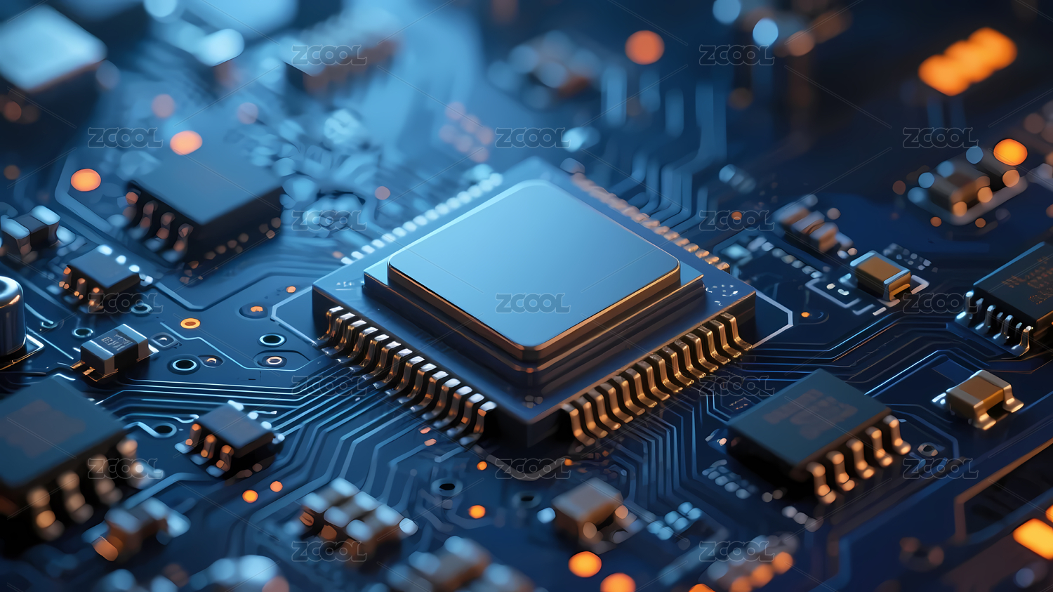 蓝色,主体,连接,科技,金色,电路板,电子元件,集成电路,细节