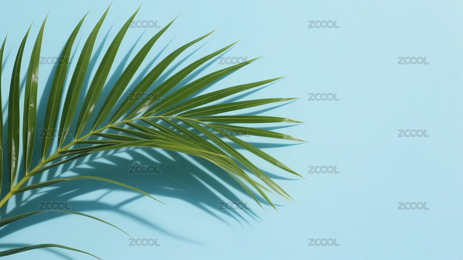 主体,浅蓝,均匀,绿色,棕榈,叶子,阴影,自然,右侧,清新