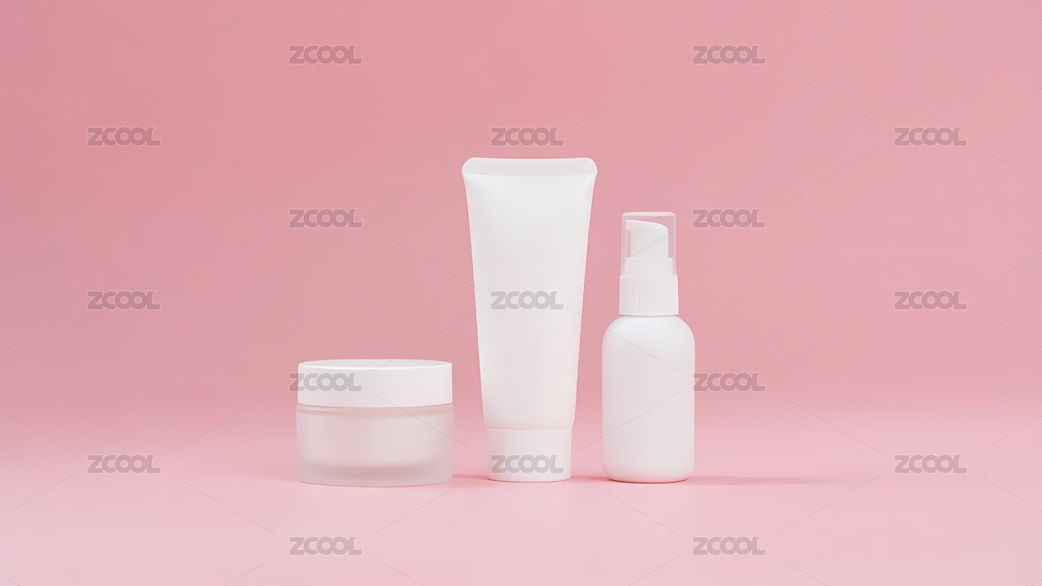 背景,白色,柔和,简洁,粉红,物体,化妆品,瓶罐,五个,容器