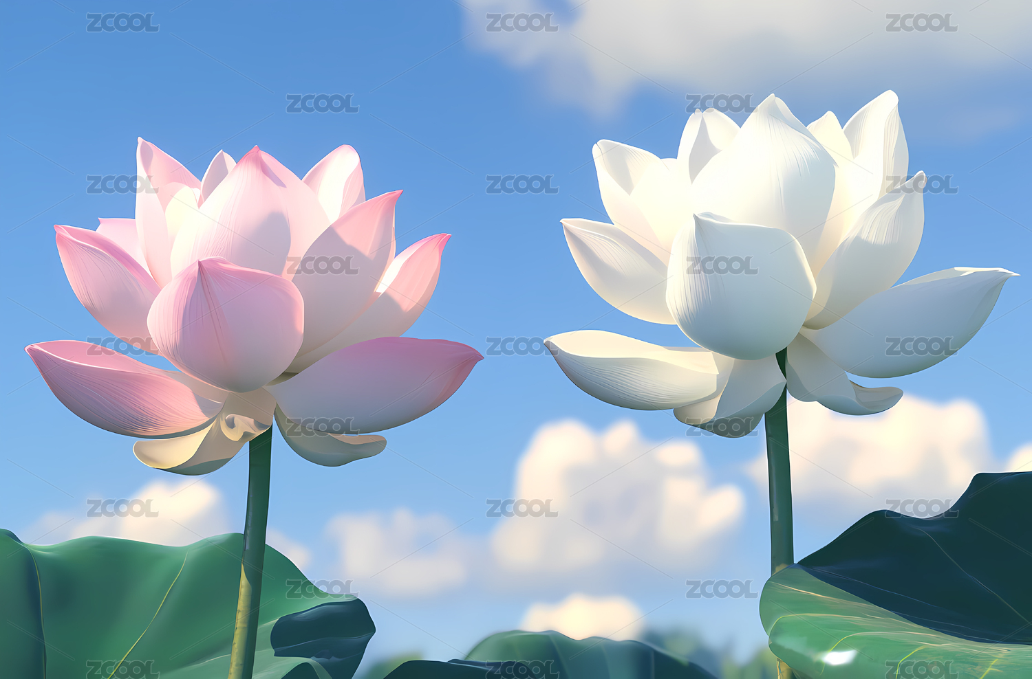 夏日荷花荷叶卡通小清新国风小暑节气插画