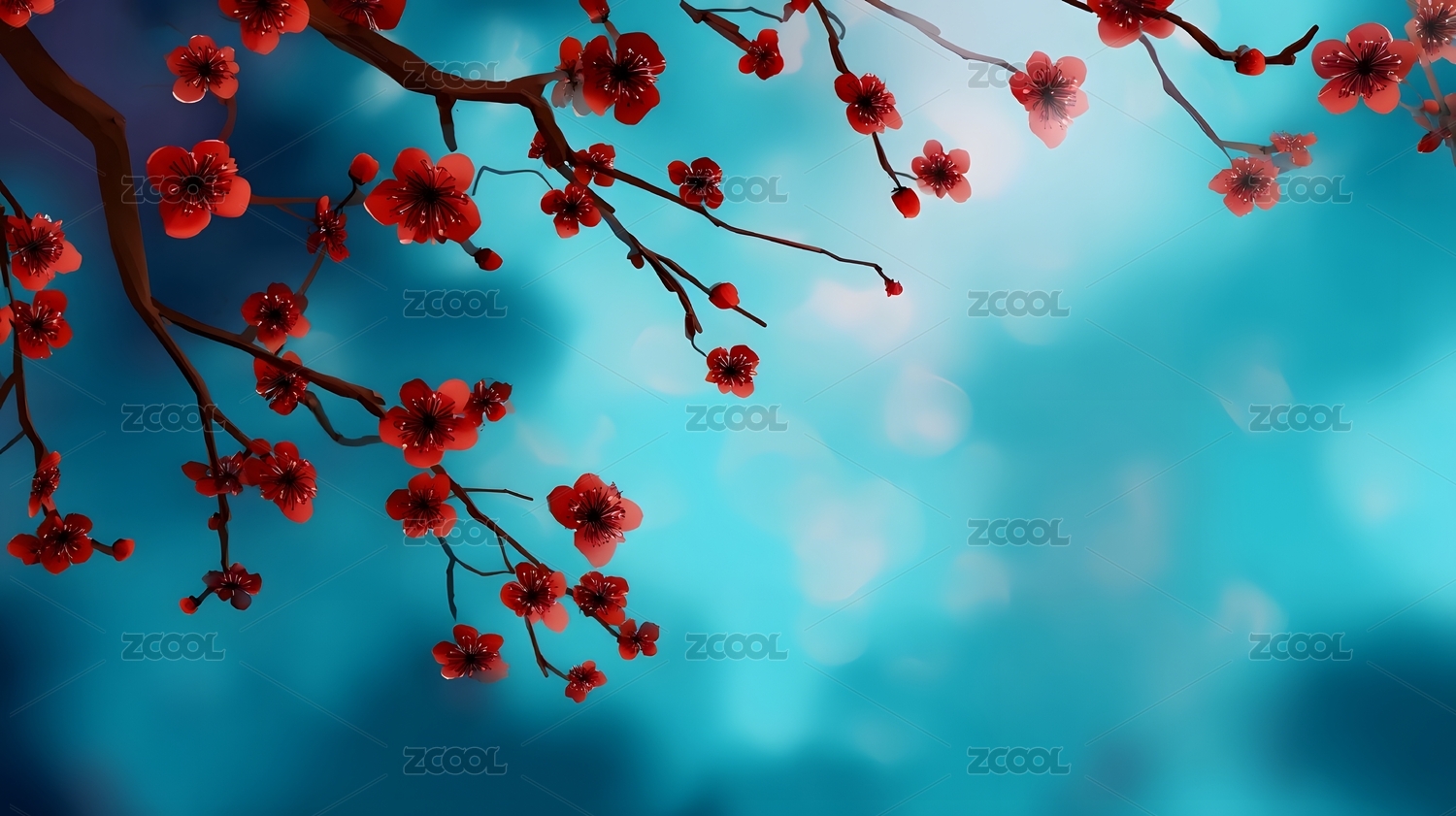 红色梅花植物花朵背景