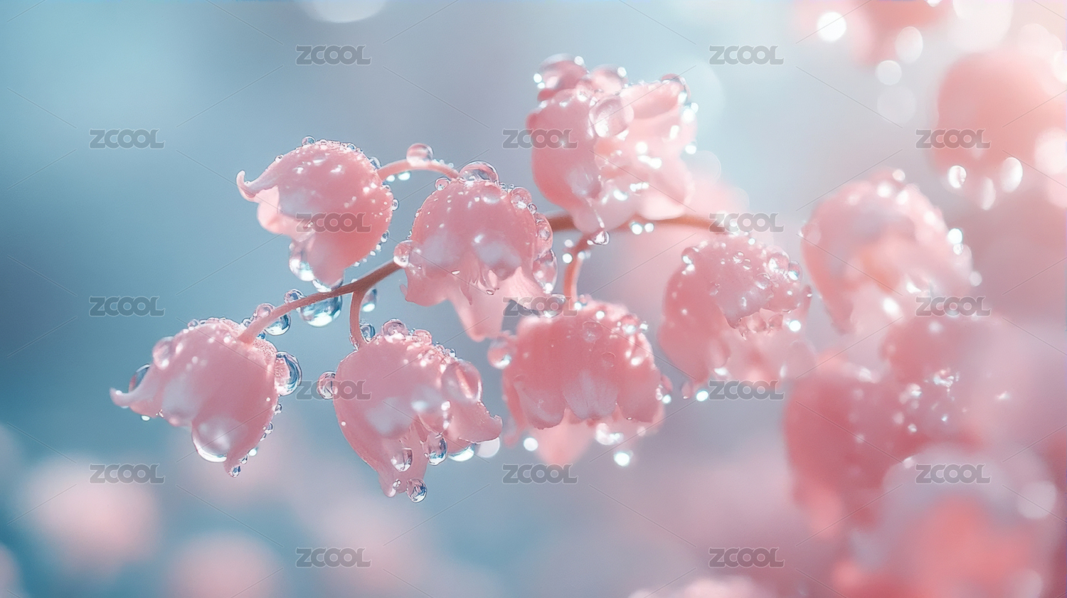 阳光下盛开的铃兰花清新简约唯美背景
