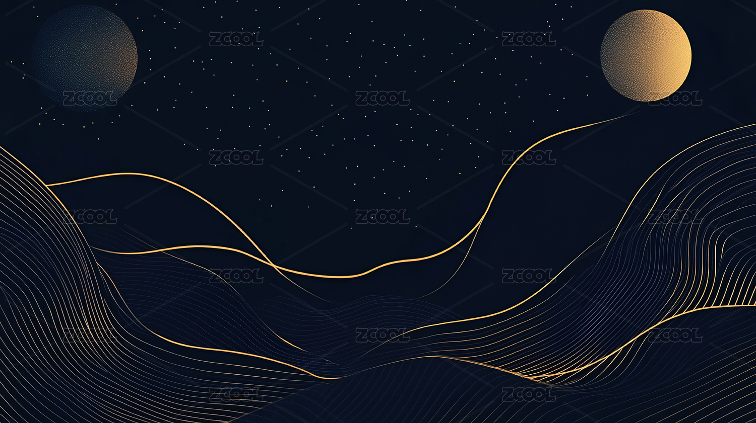中国风抽象意境山水月色