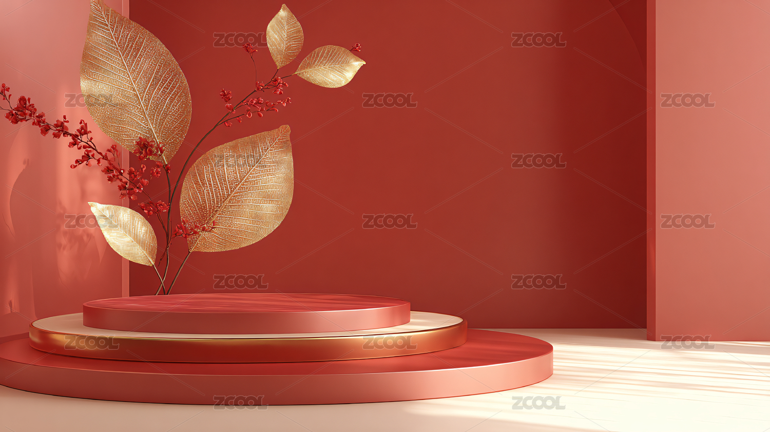 中国红羊毛毡植物装饰展台拱门3D卡通场景