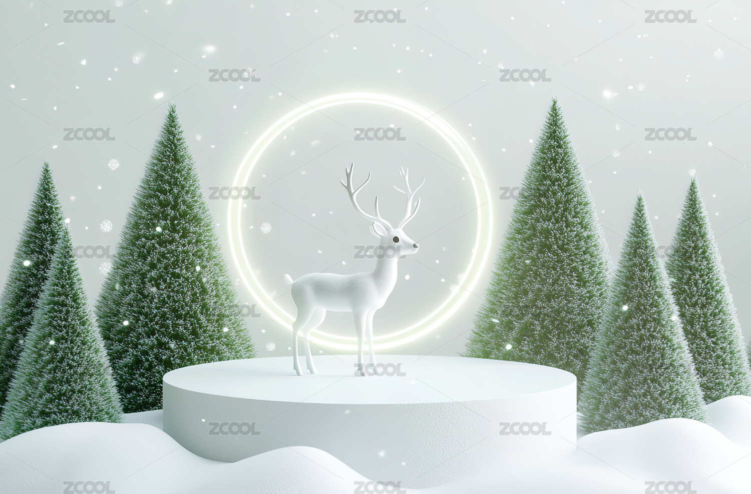 纯白冬季雪景小鹿雕塑